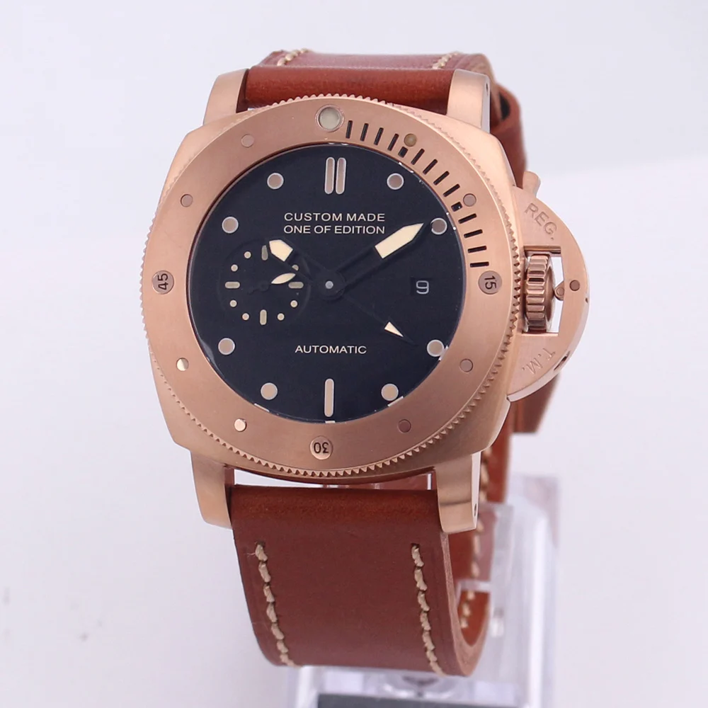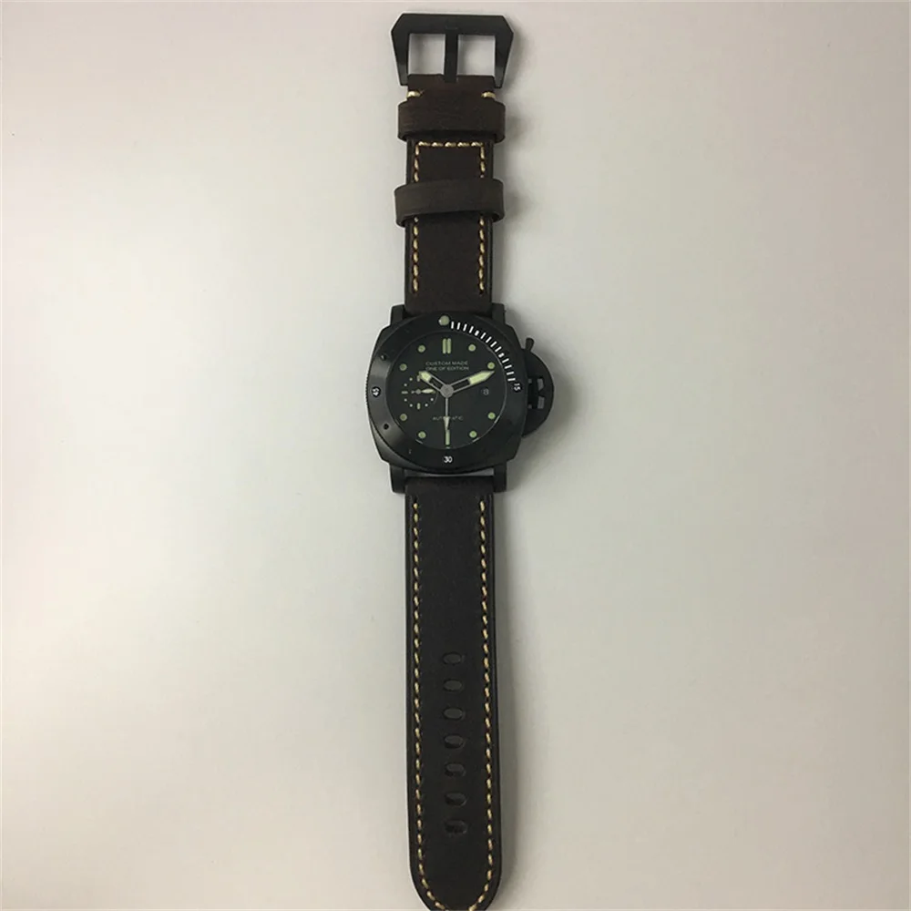 | 47mm Automatic Mechanical Watch Men Wrist Stainless Steel Case Leather strap Waterproof Luminous Watches Men P08 |