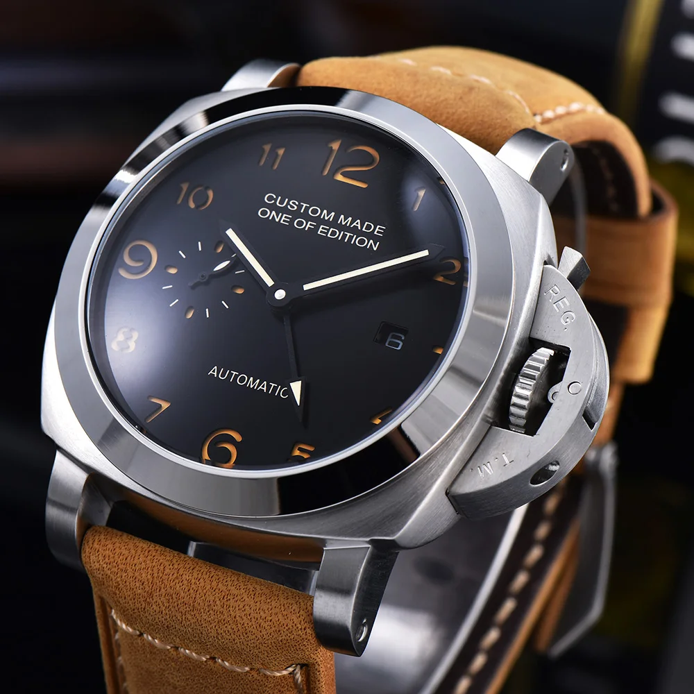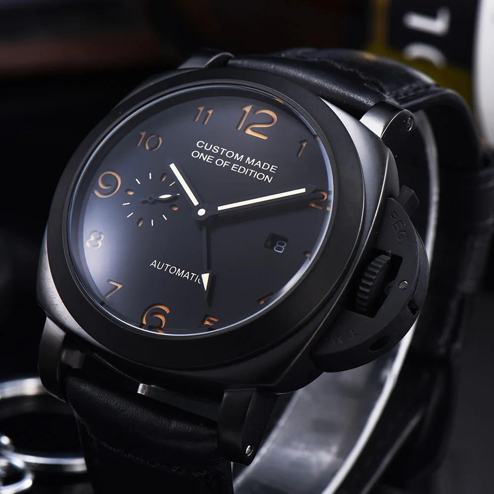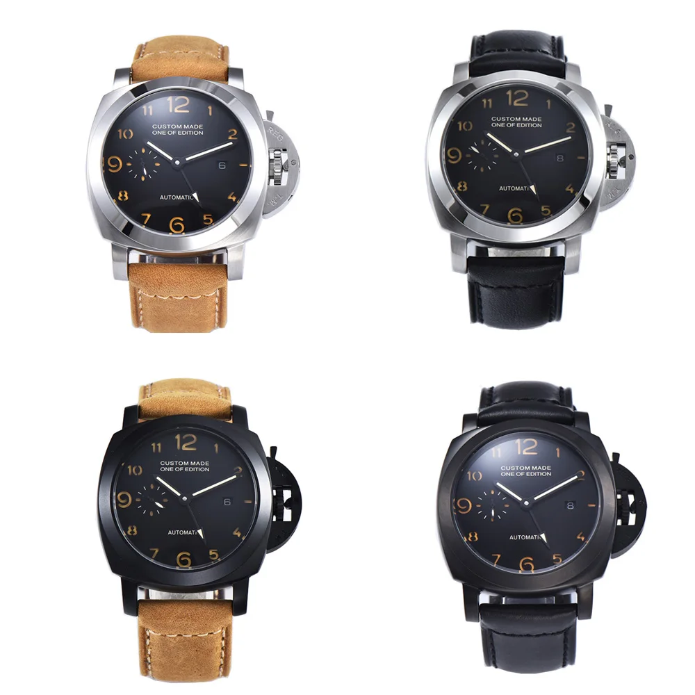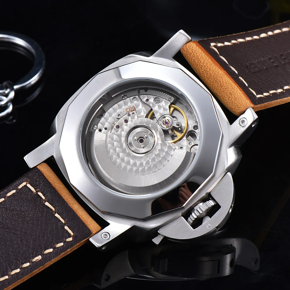 47mm Automatic Mechanical Watch Men Wrist Stainless Steel Case Leather strap Waterproof Luminous Watches Men P08