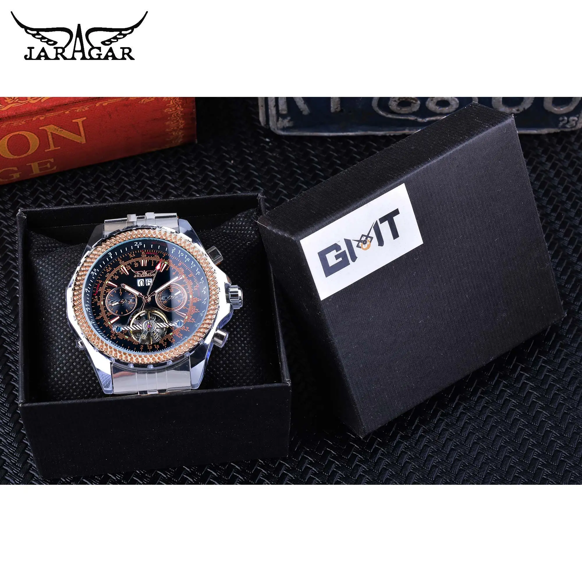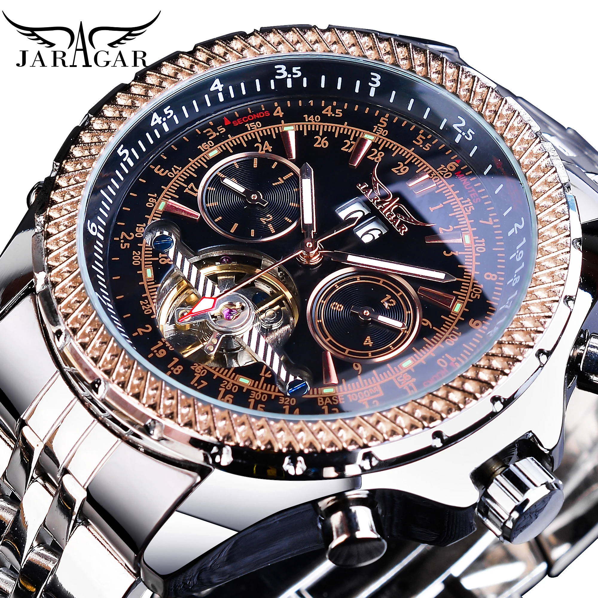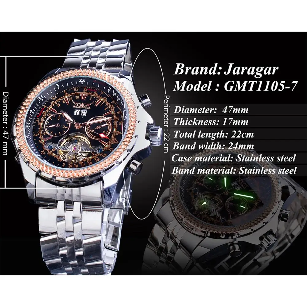 Jaragar Mens Watch Mechanical Golden Black Tourbillon Date Business Fashion Steel Band Sport Watches Automatic Self-Wind RelogioBuy Now On Aliexpress