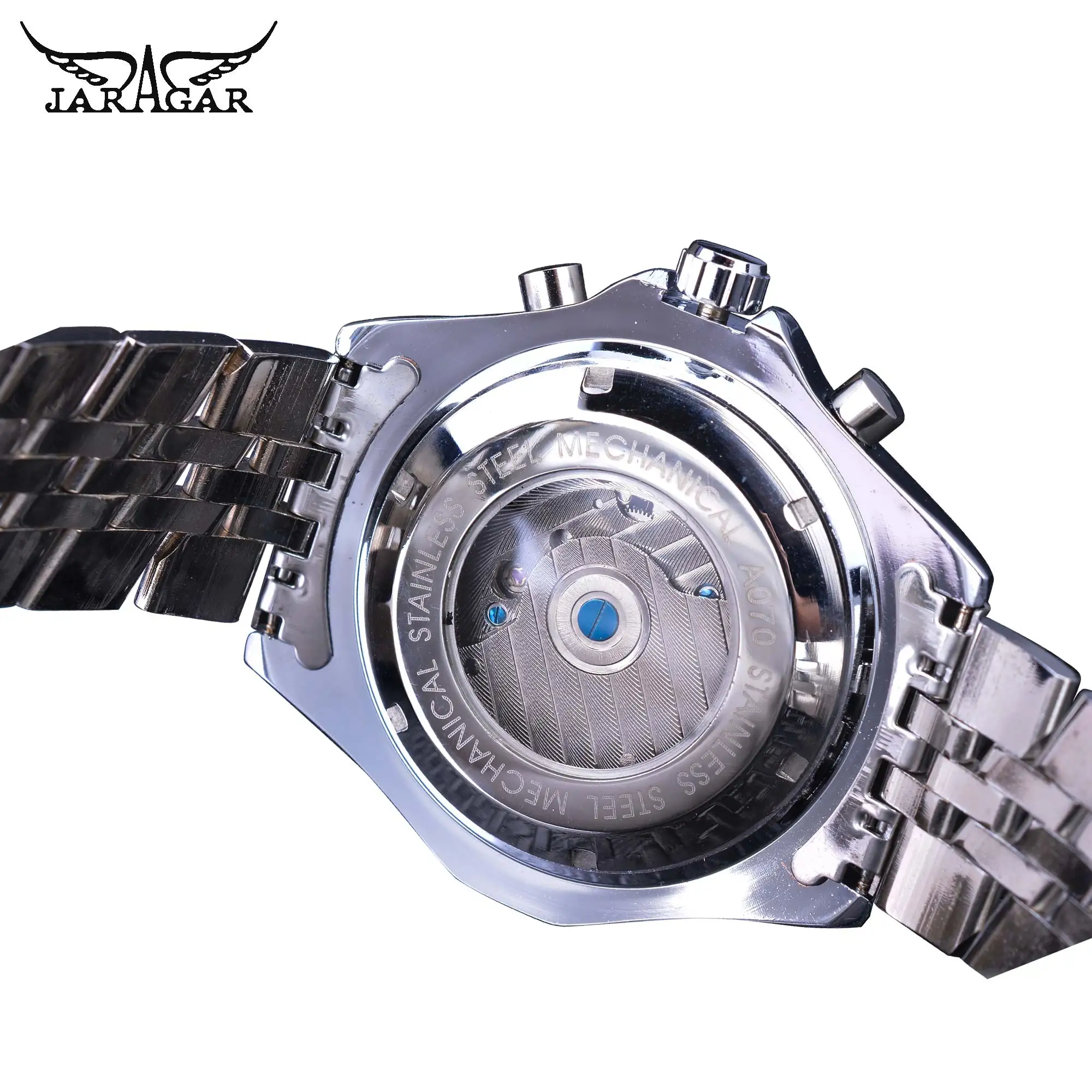 | Jaragar Silver Stainless Steel Tourbillion Business Design Calendar Display Mens Mechanical Automatic Watches Top Brand Luxury |