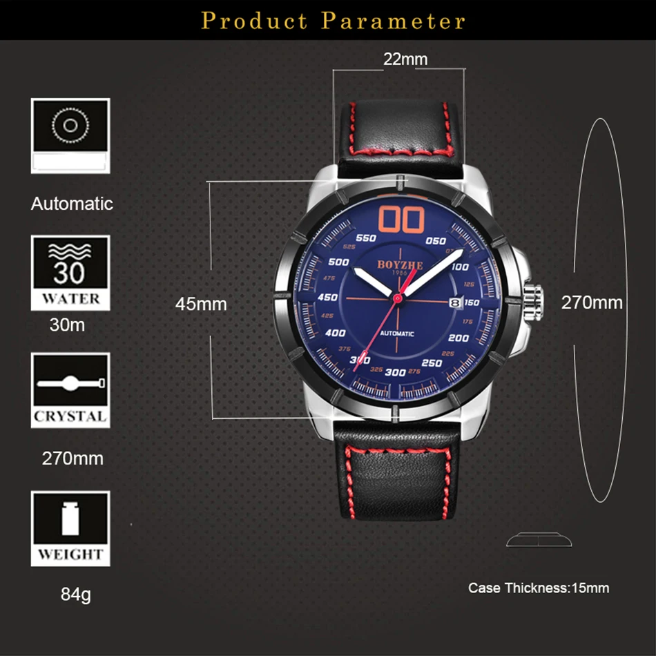 | BOYZHE Mens Automatic Watch Power Reserve Mechanical Wristwatch Men Waterproof Fashion Brand relojes automaticos de hombre 2019 |