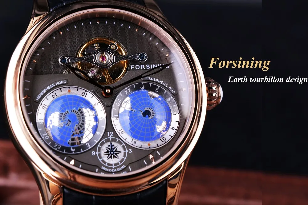 | Forsining 2016 Earth Real Tourbillion Multi-dimensional Designer Mens Watches Top Brand Luxury Fashion Casual Automatic Watch |