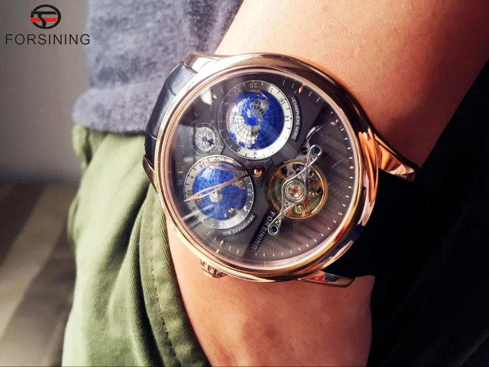 Best Price Comparison With Forsining 2016 Earth Real Tourbillion Multi-dimensional Designer Mens Watches Top Brand Luxury Fashion Casual Automatic Watch