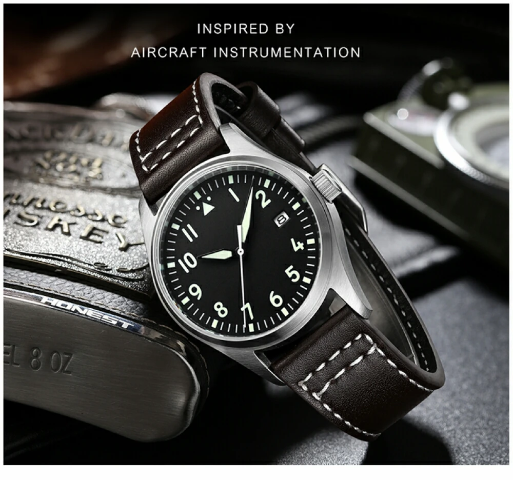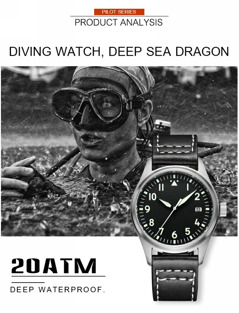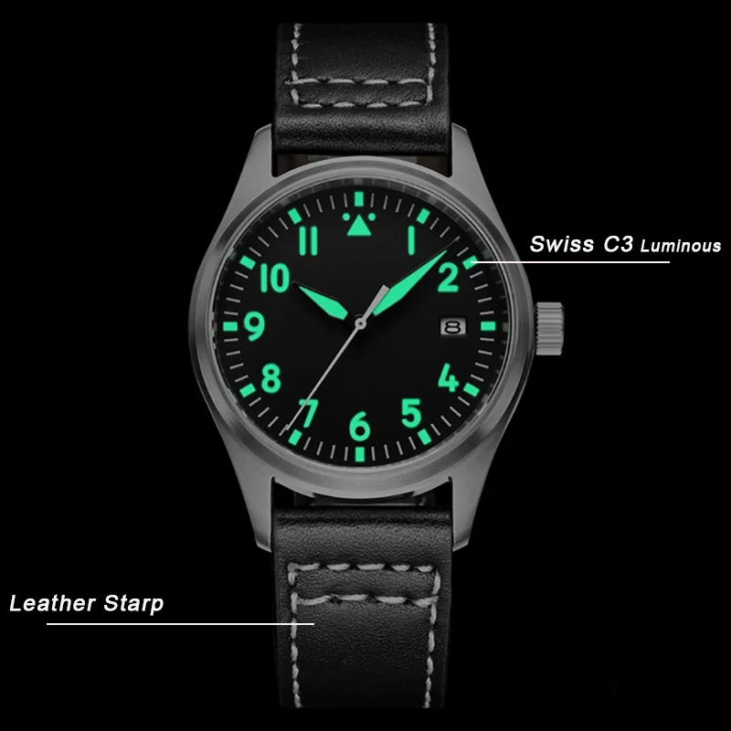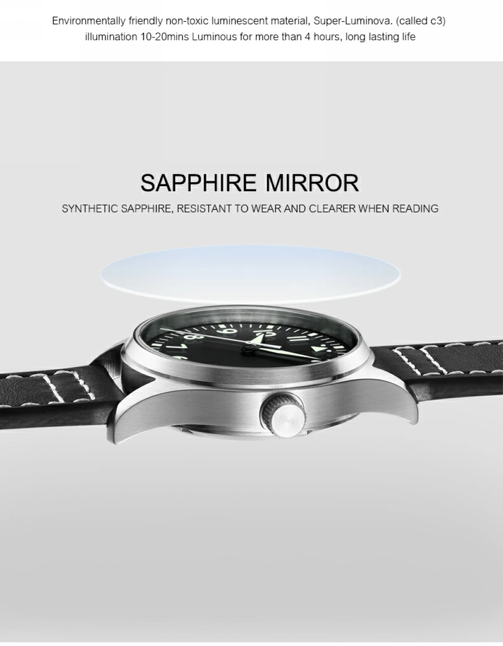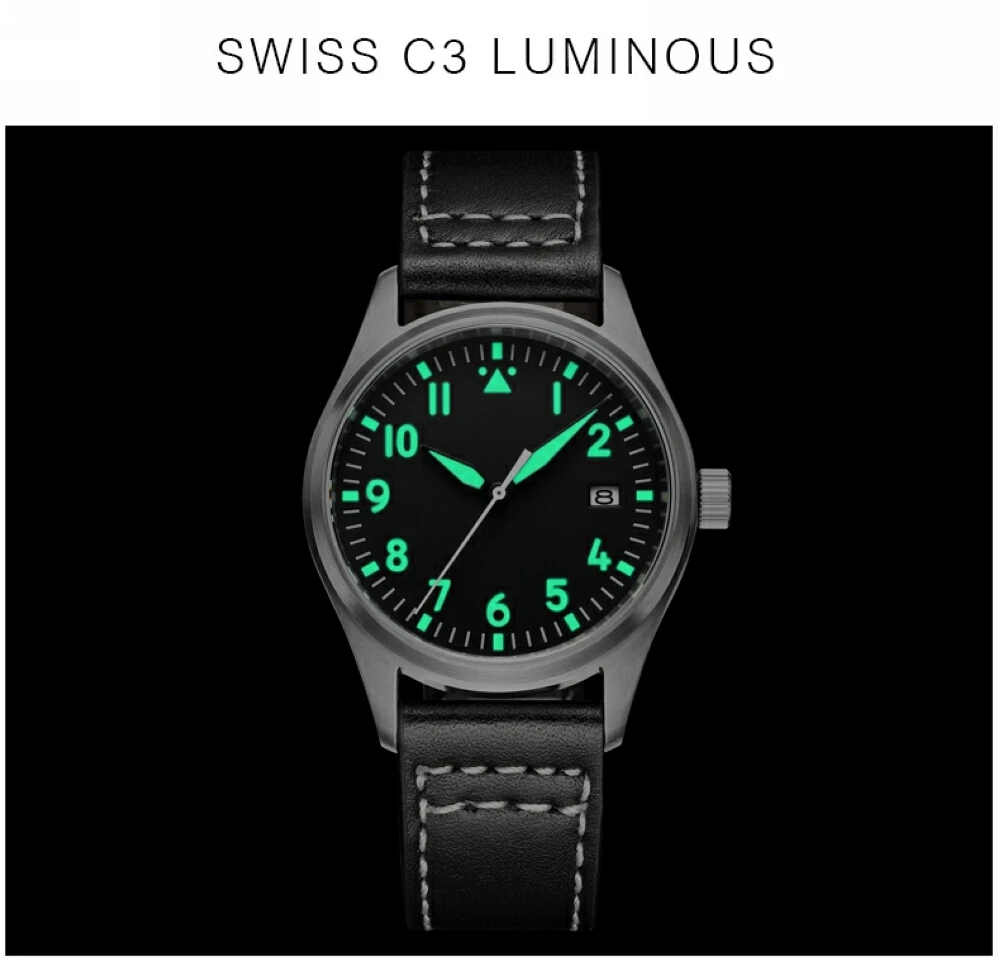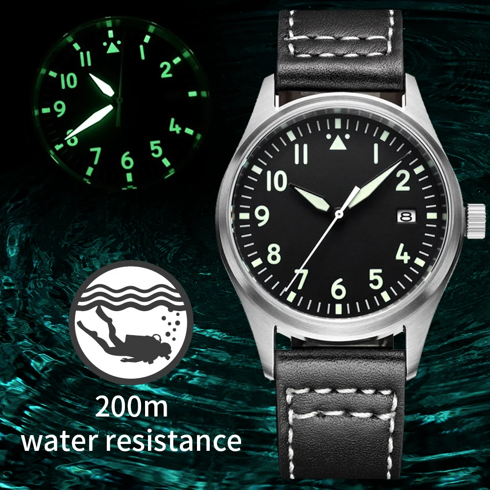 Japan NH35 Pilot Watch Automatic Mechanical Diver Watch C3 Super Luminous men's watches Sapphire Crystal 200m dive watch Luxury
