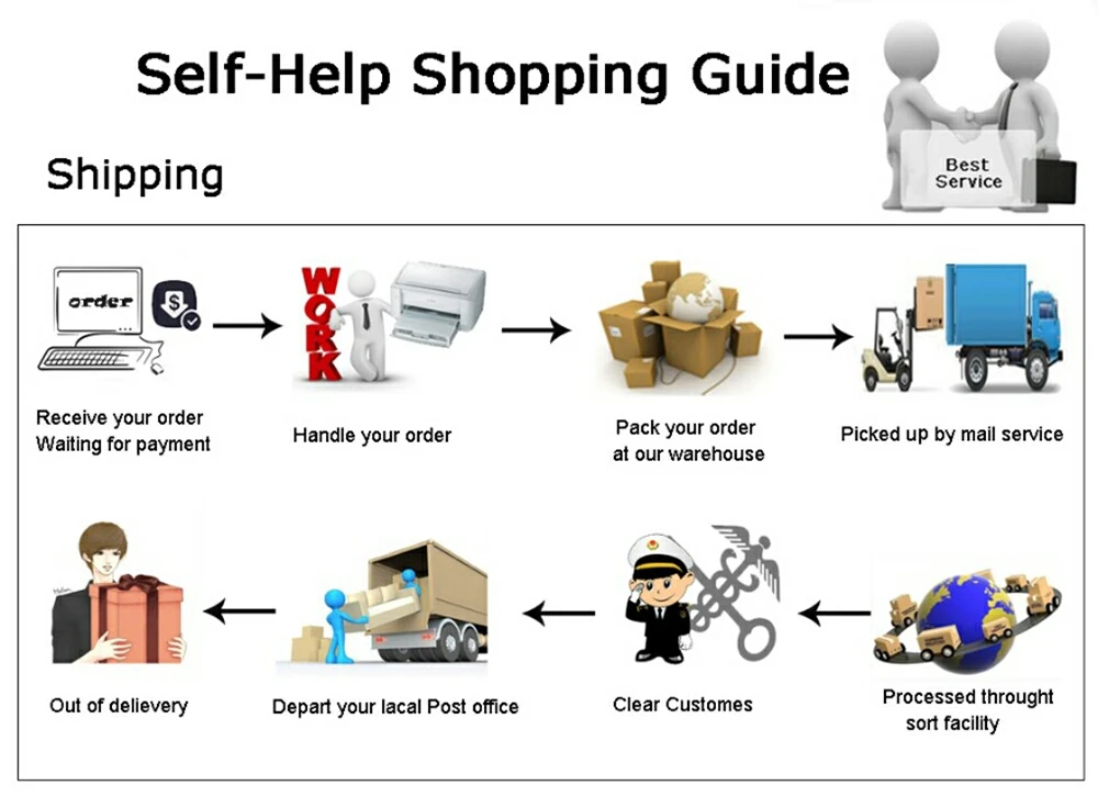 1. All products will be sent in 3-7 days after payment.If there are special circumstances, we will contact you through AliExpress the first time. Pay attention to AliExpress messages.2. The default logistics method: shipping method (free): Aliexpress Standard Shipping.AliExpress Standard Shipping: 10-45 working days.(Notice: due to customs and weather or shipping seasons such as Christmas, the delivery time for you. Please kindly wait a little longer.)3. We guarantee that all items are 100% in good condition and of high quality.4. If you are not satisfied with an item for any reason, return it within 7 daysUpon receipt, it will be replaced or refunded.5. If the product has any quality problem, we will offer a full refund.6. We guarantee your zero risk purchase experience here.