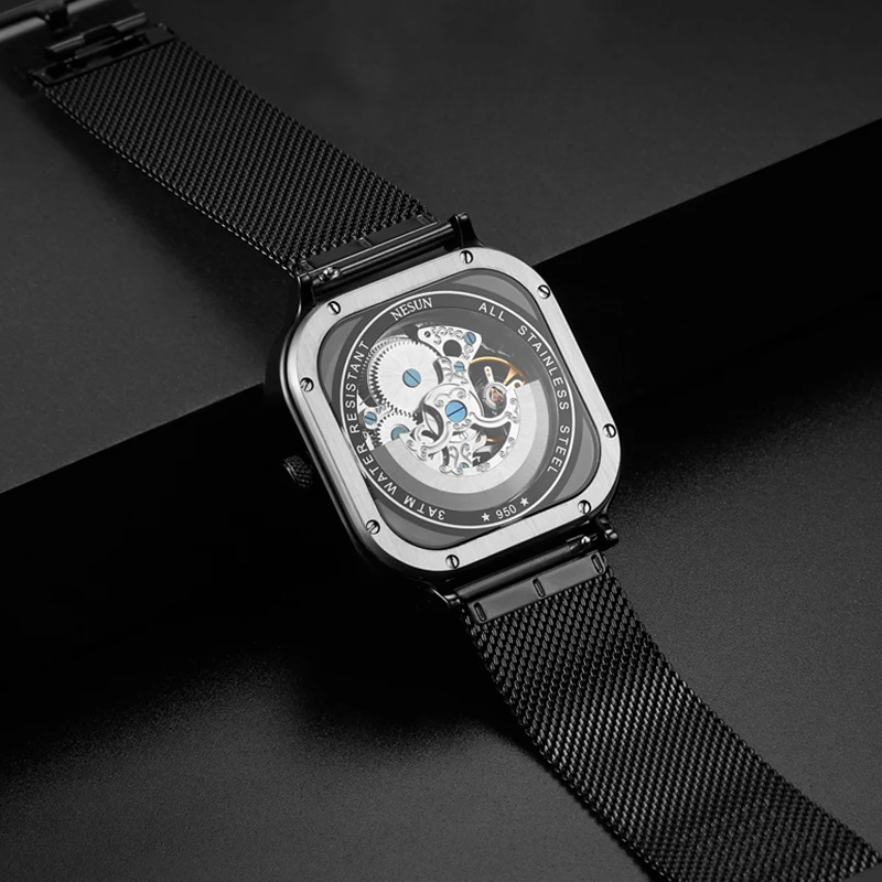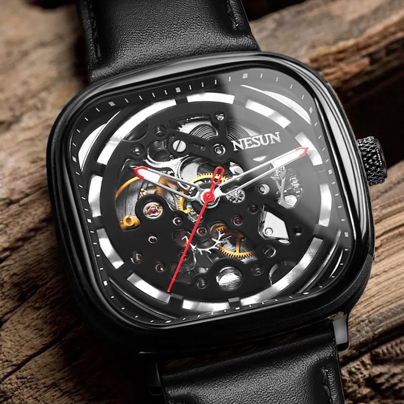 | Nesun Square Mechanical Watch Men Fashion Skeleton Waterproof Automatic Watches Switzerland Luxury Brand Relogio Masculino 9500 |