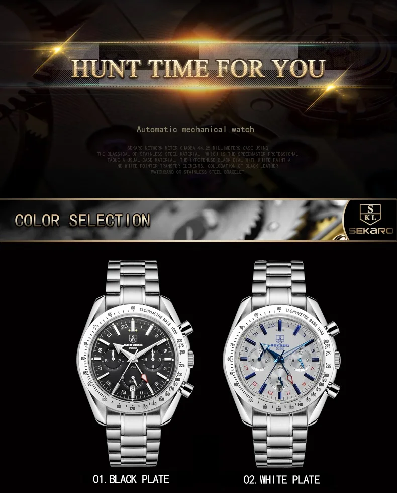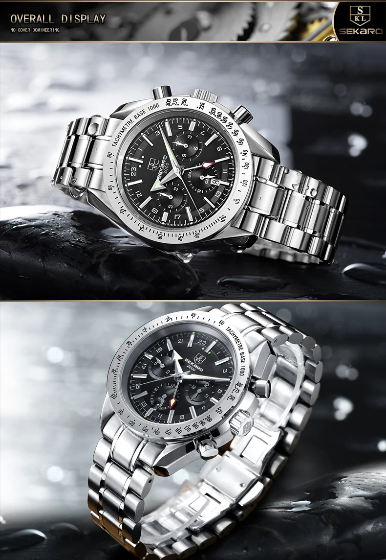 | Sekaro Automatic Mechanical Watch Mens Steel Bracelet Table Top Brand Waterproof Luminous Multi-functional Business Male Watches |