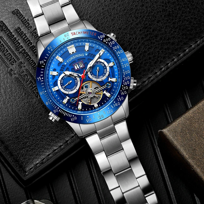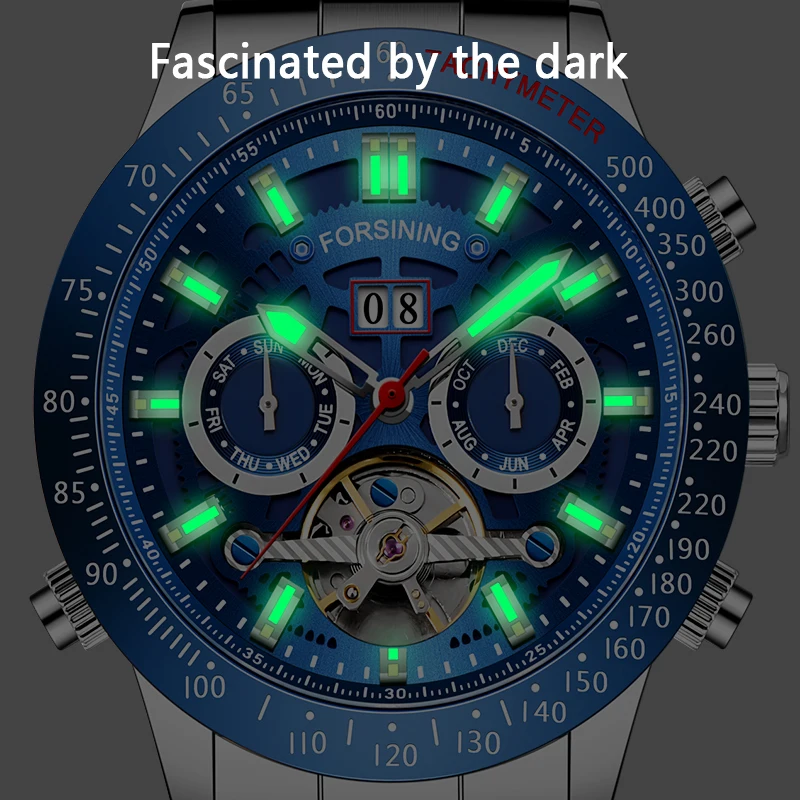 | Top Brand Luxury FORSINING Men Automatic Military Watch Tourbillion Watch Stainless Steel Luminous Calendar Display Watch |