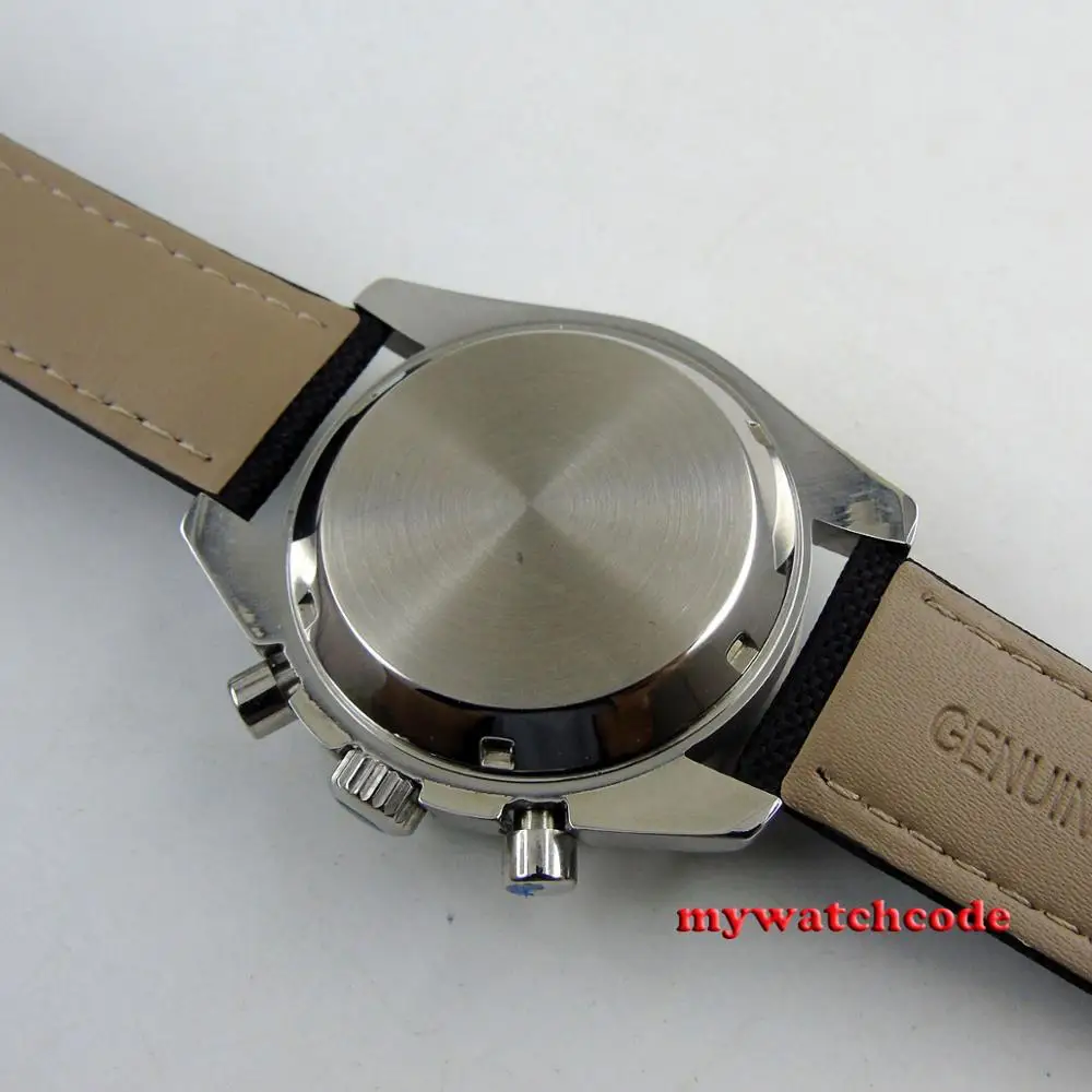 luxury brand 44mm Parnis black dial solid case stop watch full Chronograph full steel waterproof quartz mens watch