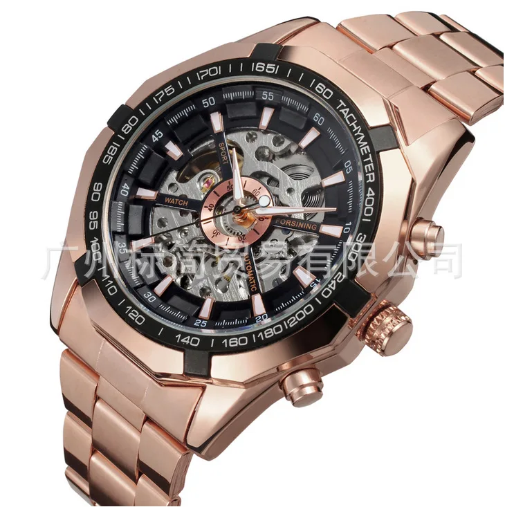 Winner genuine full hollow men's automatic mechanical watch steel belt
