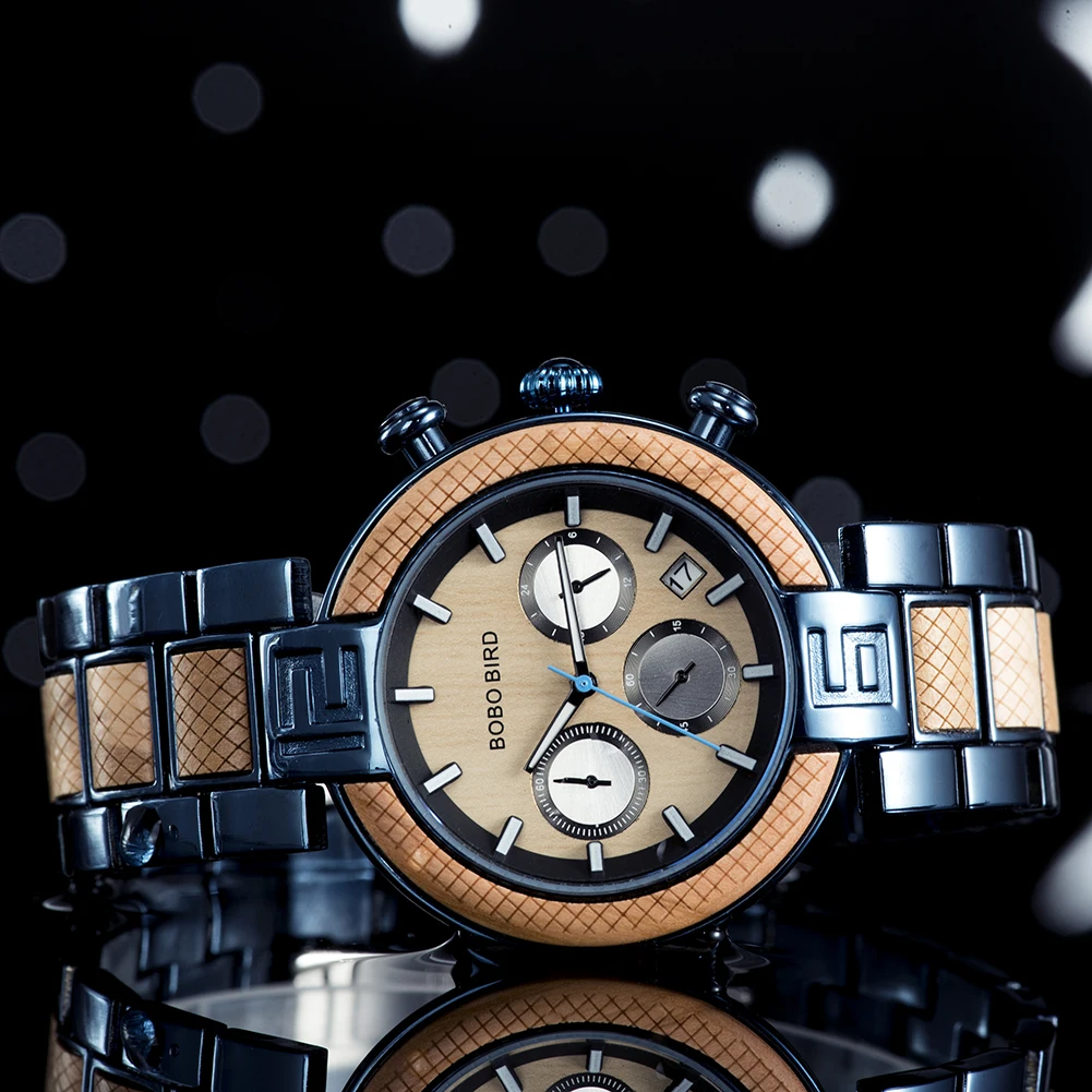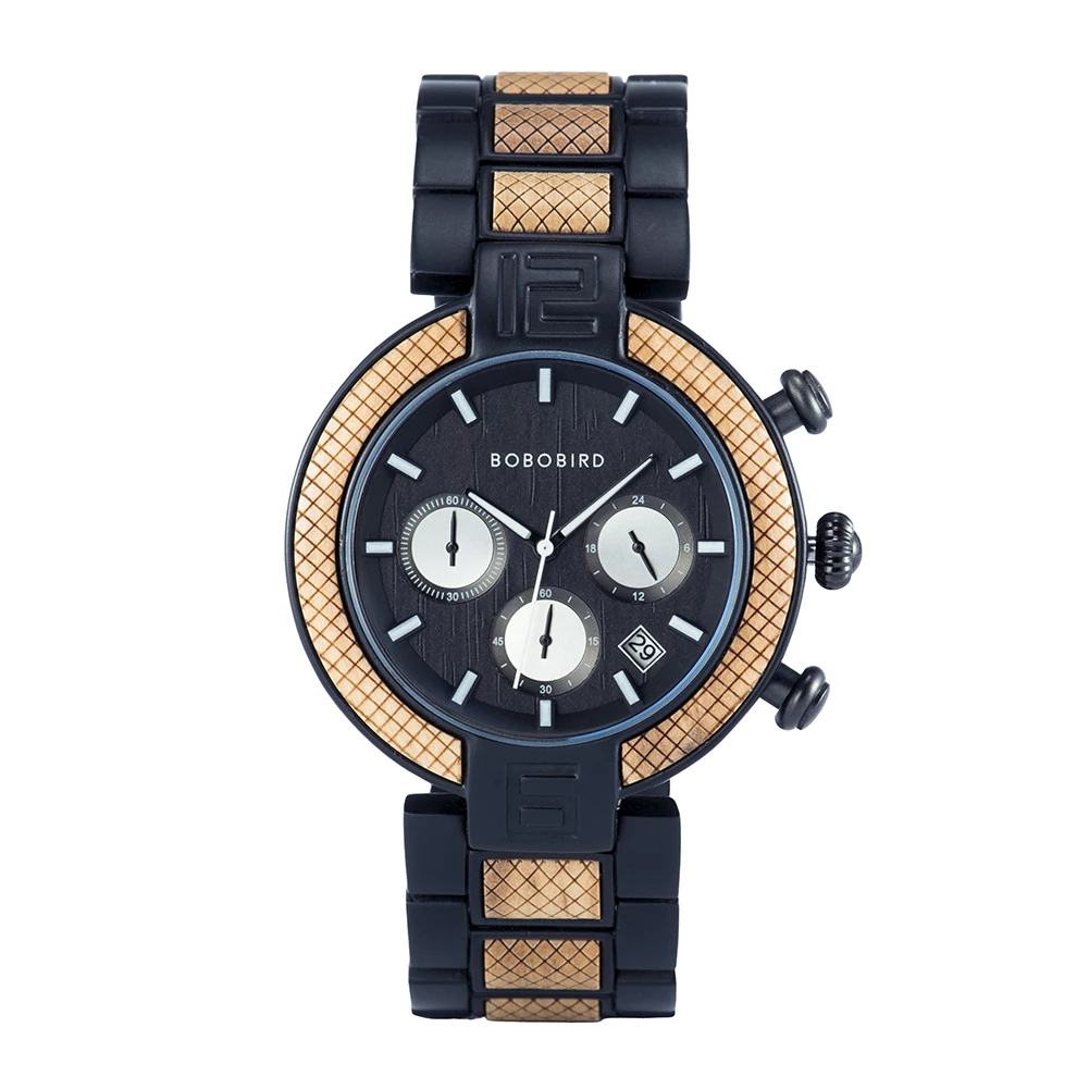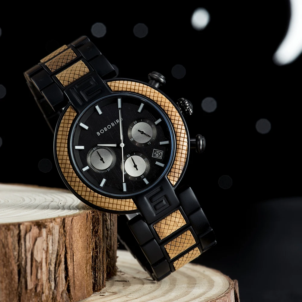 BOBO BIRD Chronograph Men Watch Wooden Luxury Stainless Steel Quartz Wristwatches with Calendar relojes de marca famosa Christma