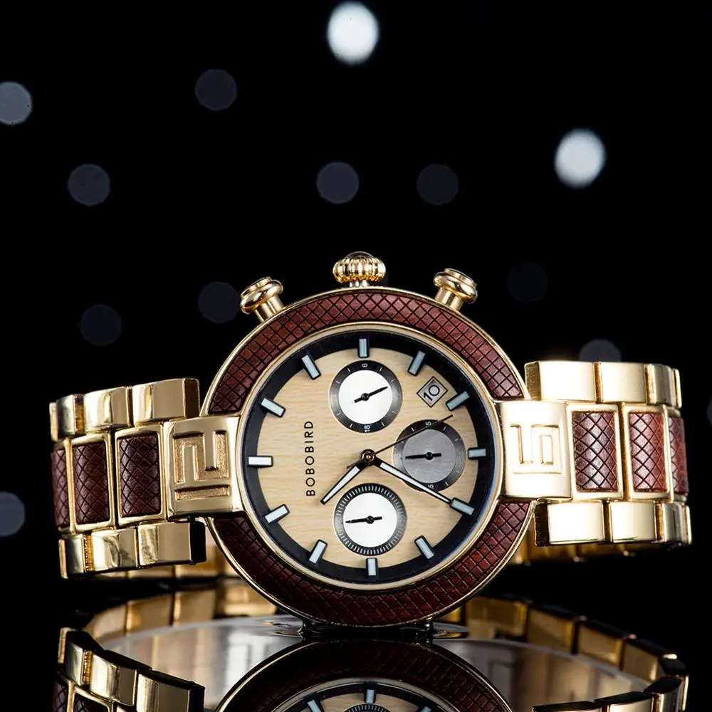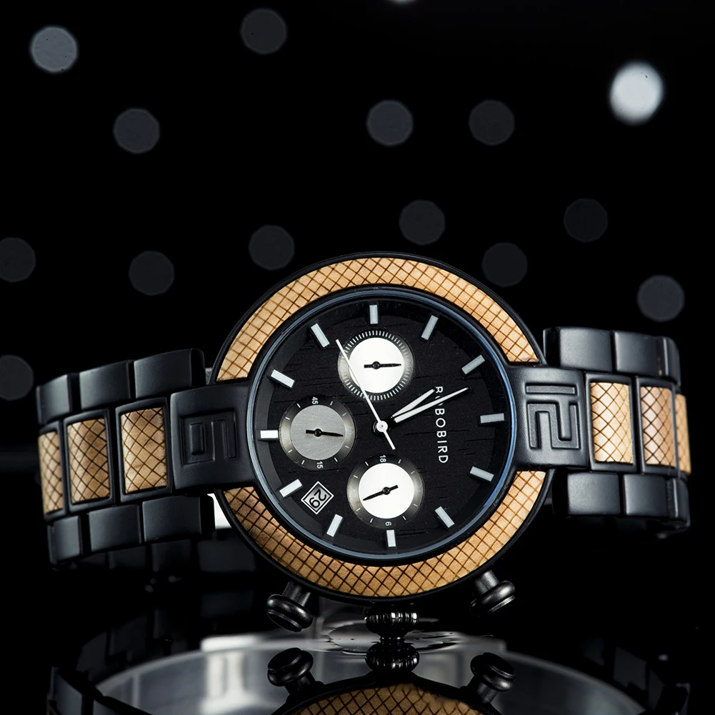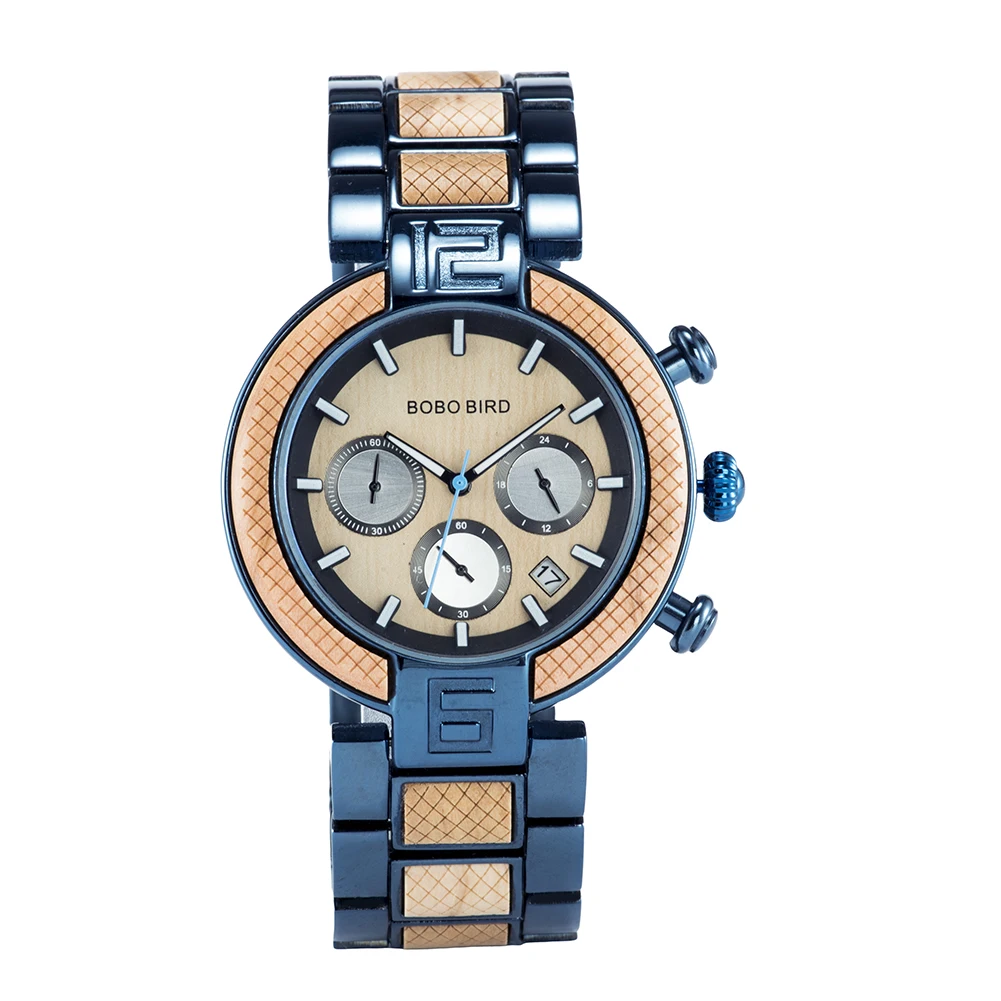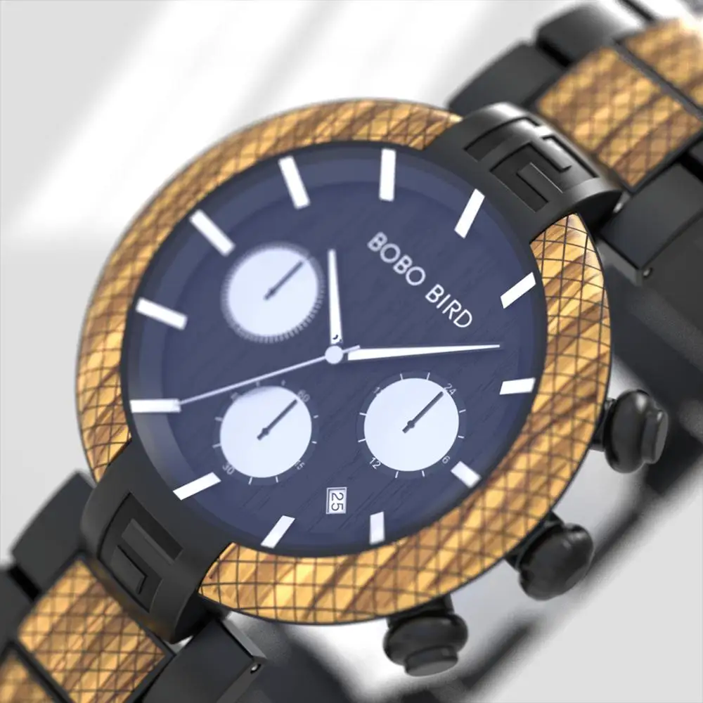 BOBO BIRD Chronograph Men Watch Wooden Luxury Stainless Steel Quartz Wristwatches with Calendar relojes de marca famosa Christma