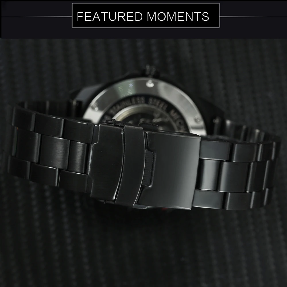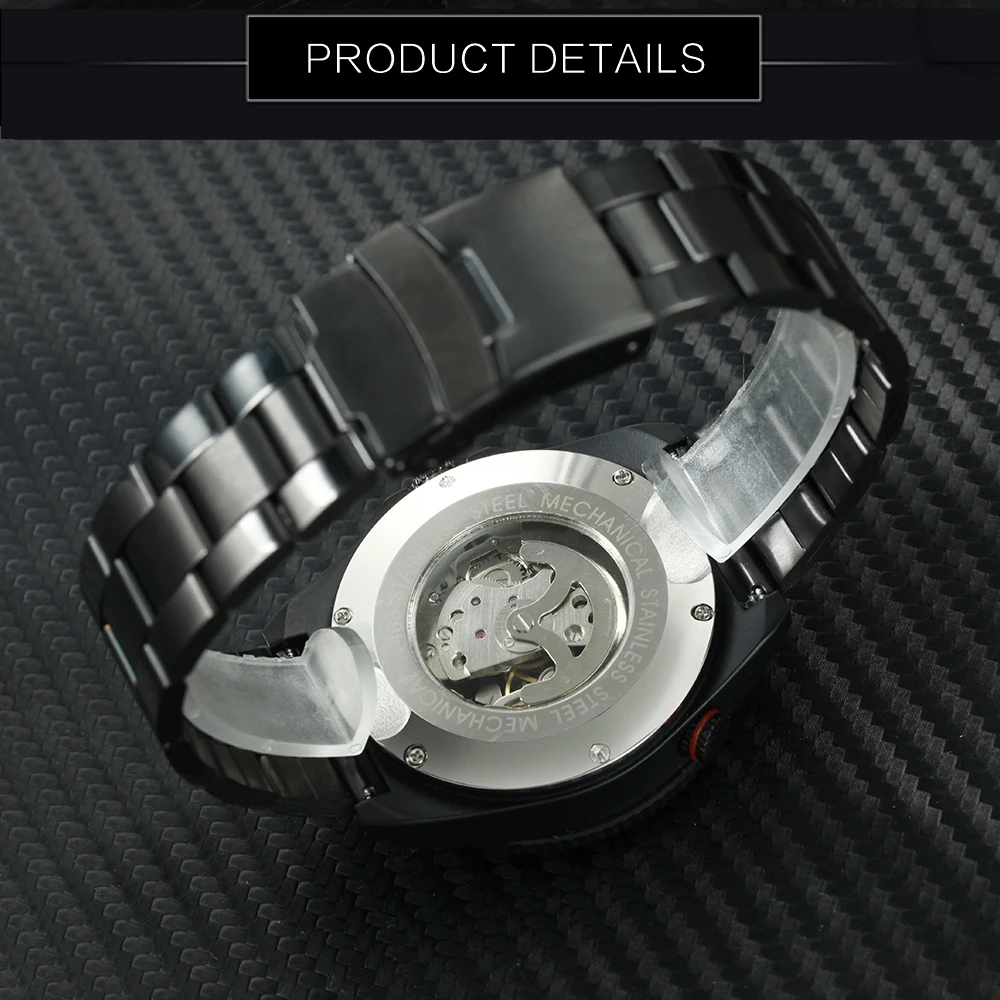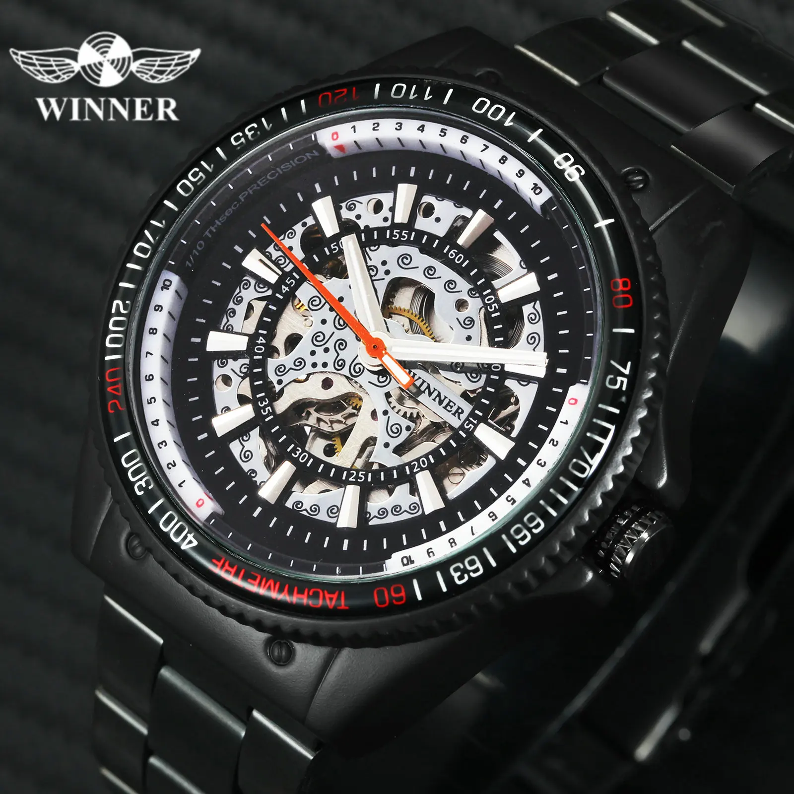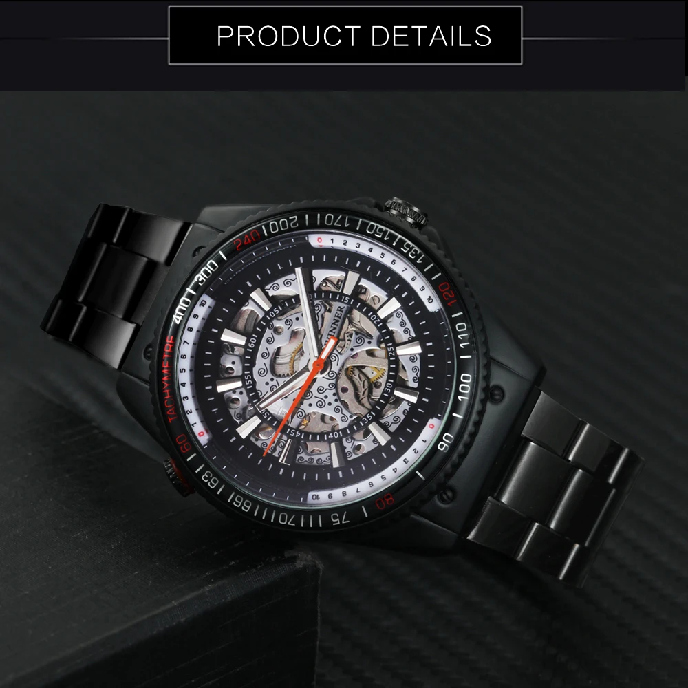 | WINNER Official Chic Military Watch Men Automatic Mechanical Watches Brand Luxury Stainless Steel Strap Skeleton Wristwatches |