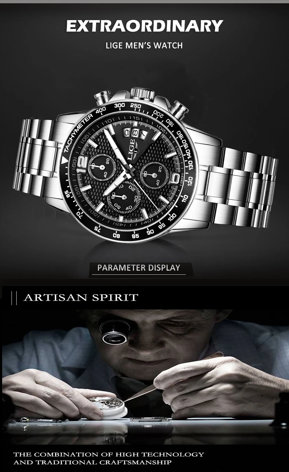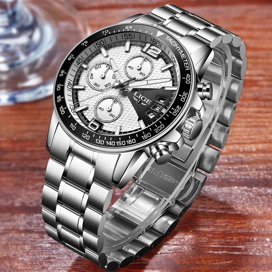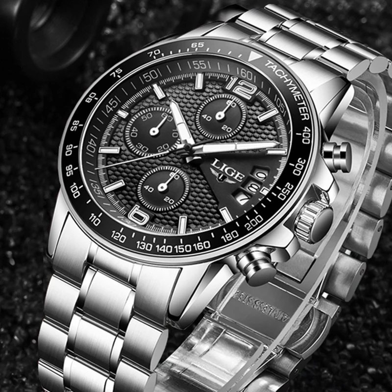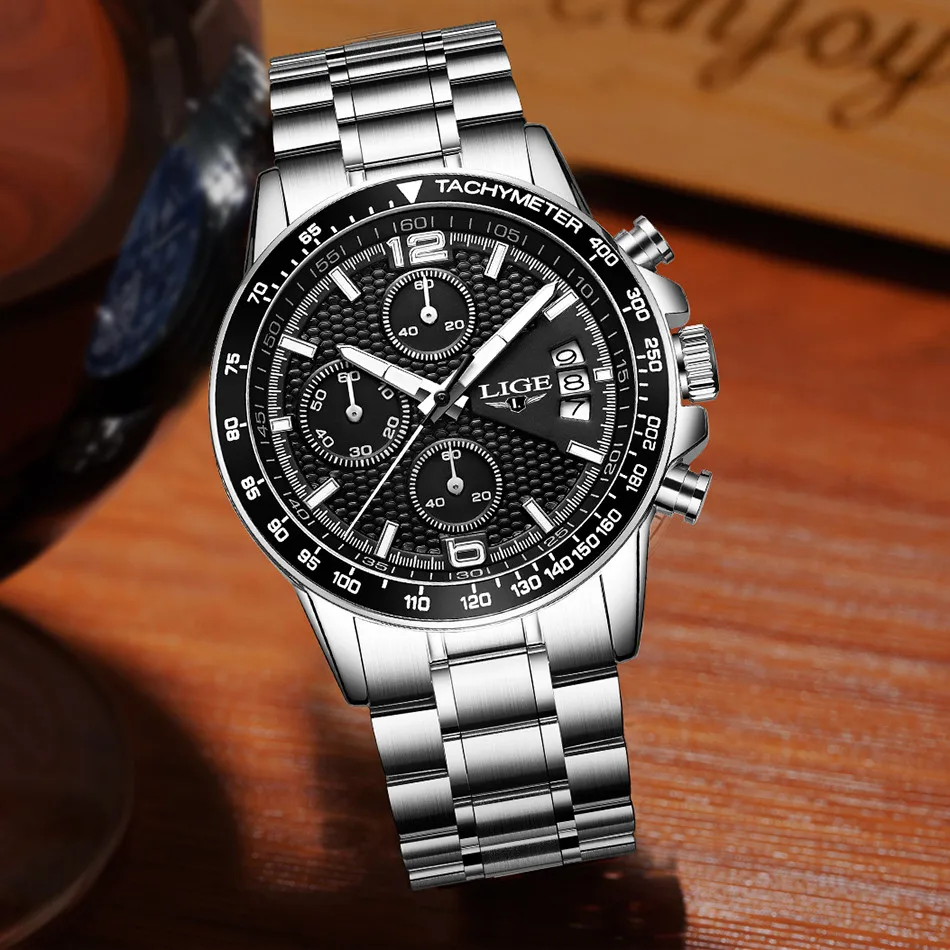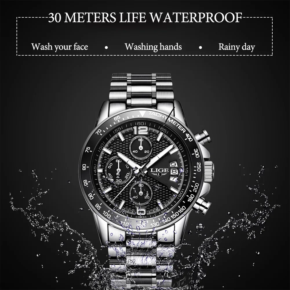 LIGE New Men Watches Top Luxury Brand Fashion Sport Waterproof Chronograph Male Stainless Steel Wristwatch Men Relogio Masculino