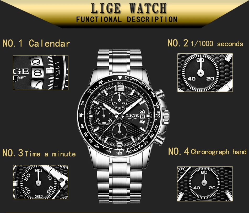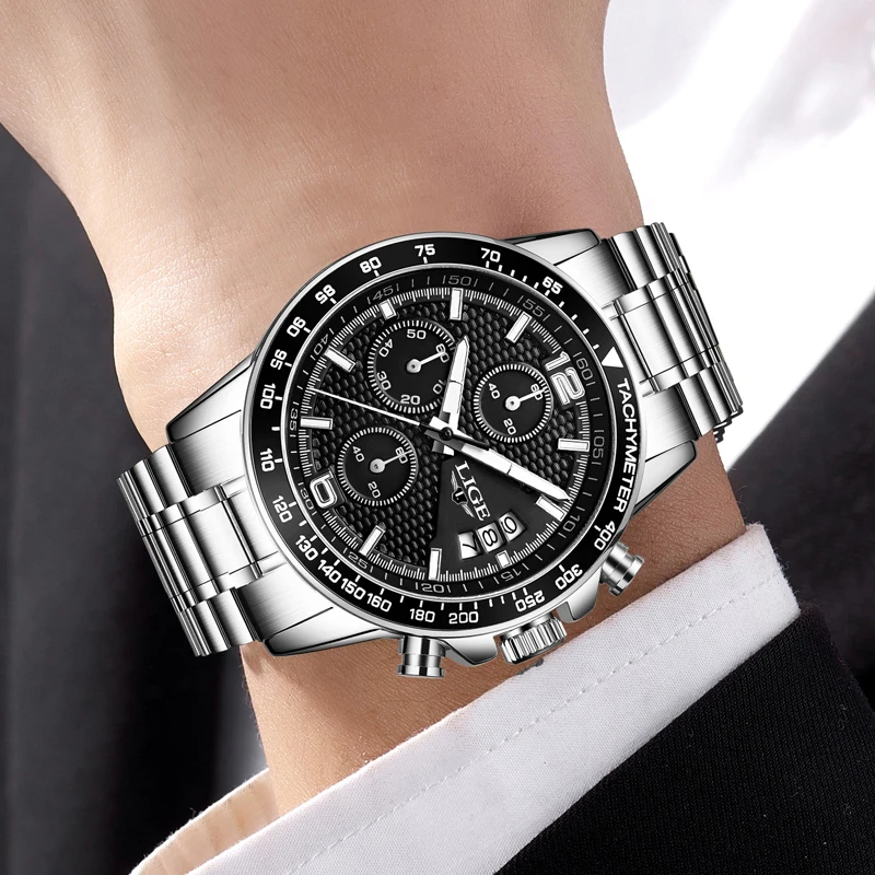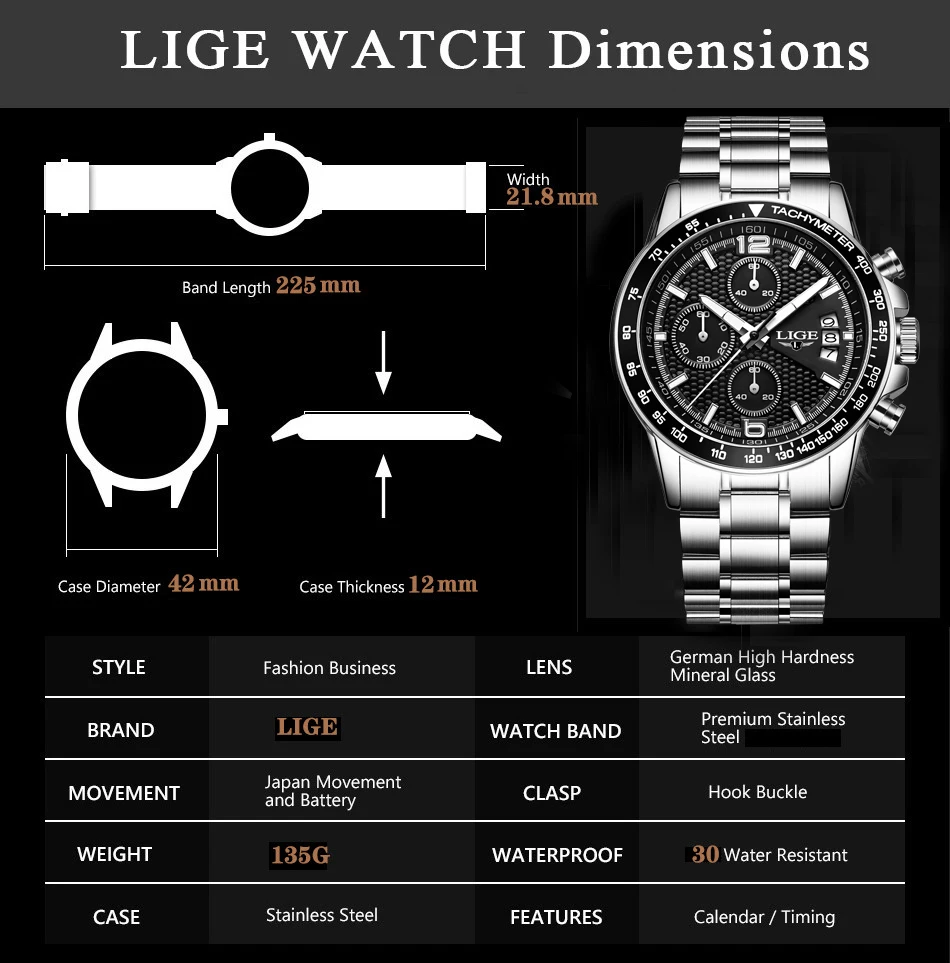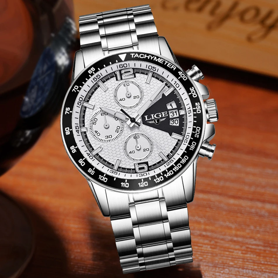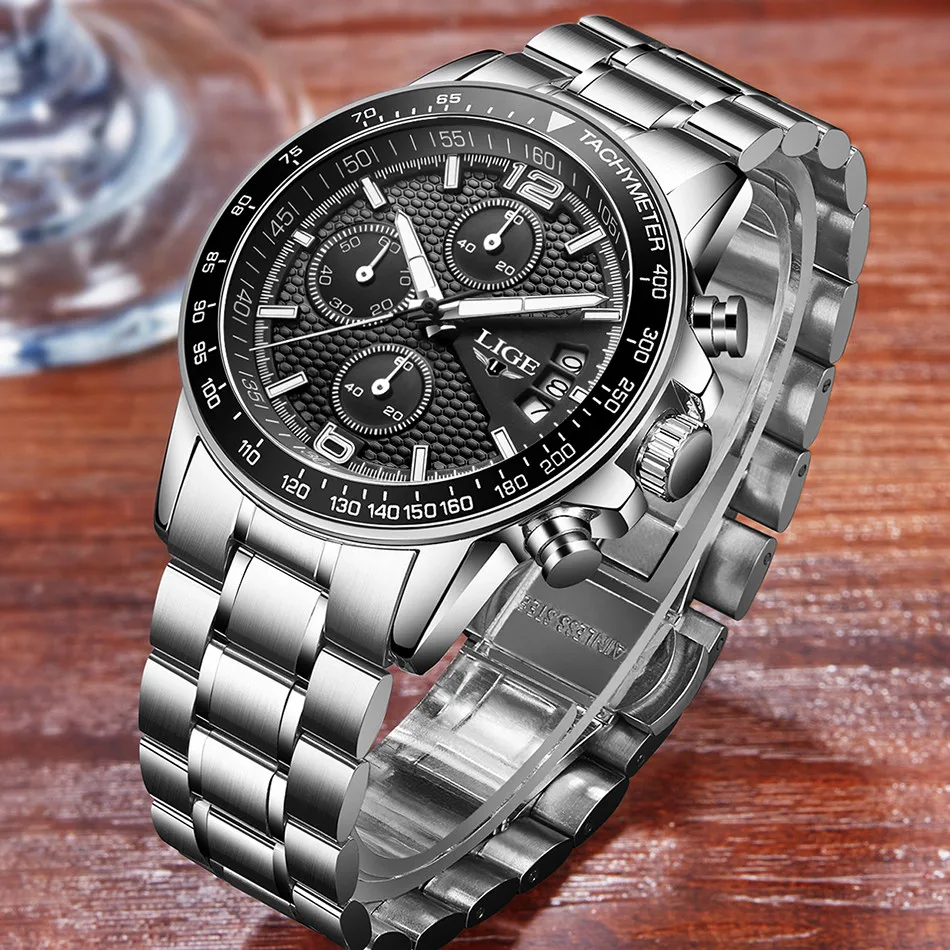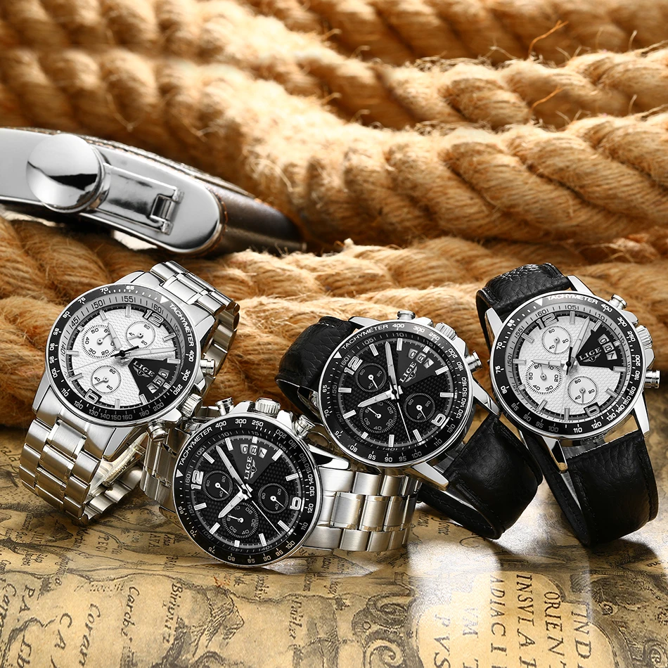 LIGE New Men Watches Top Luxury Brand Fashion Sport Waterproof Chronograph Male Stainless Steel Wristwatch Men Relogio Masculino