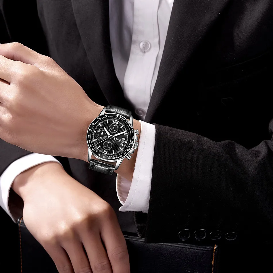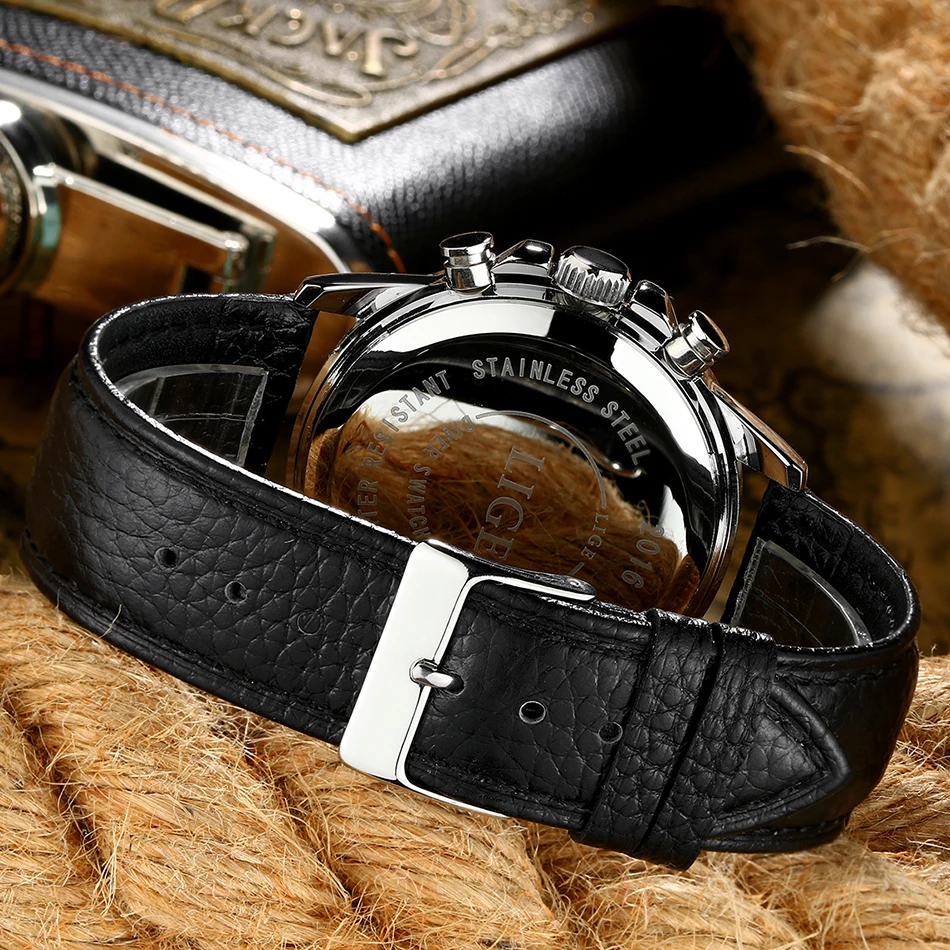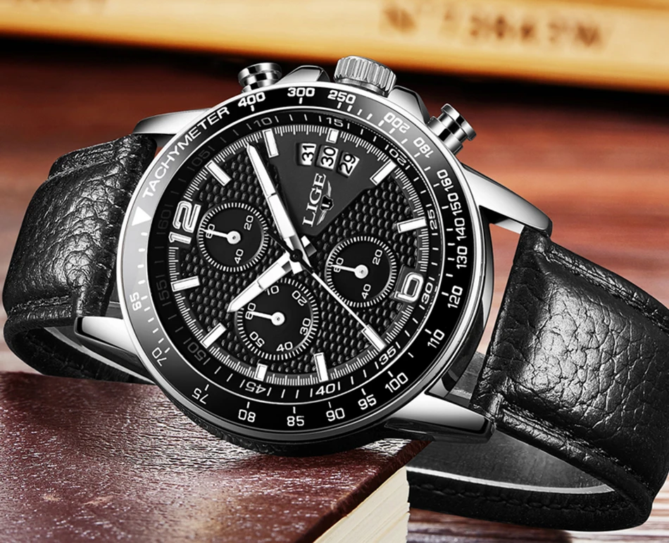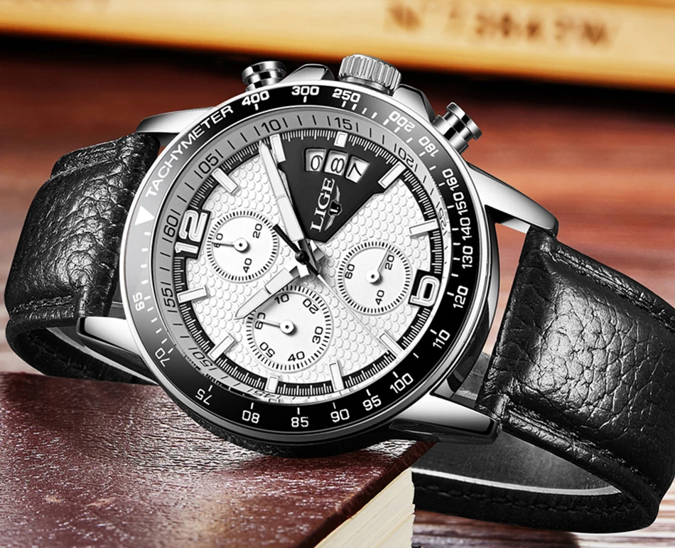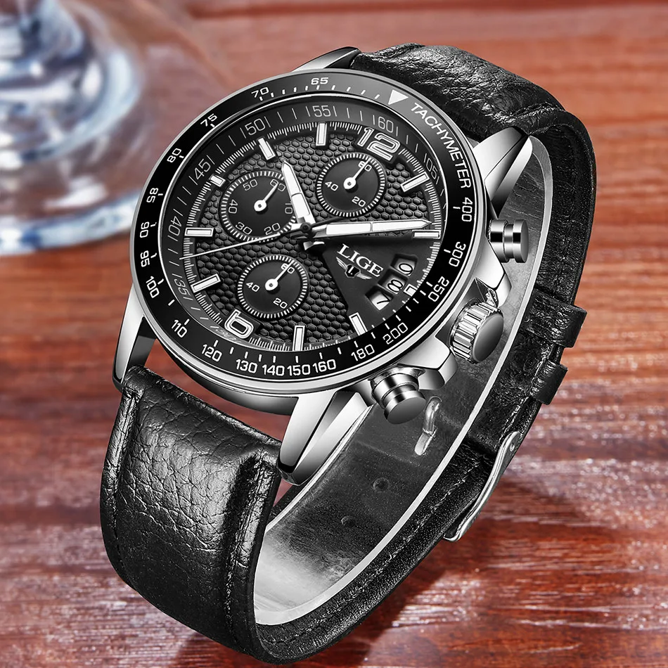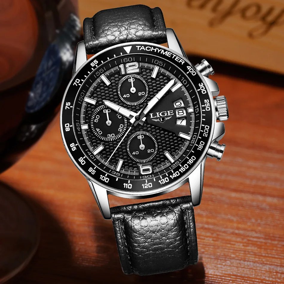 New Mens Watches LIGE Top Brand Luxury Mens Leather Sport Watch Men Waterproof Multifunction Quartz Wristwatch Relogio Masculino