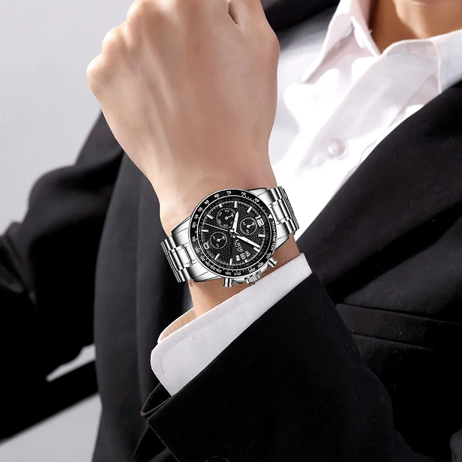 LIGE Business Mens Watches Top Brand Luxury with Stainless Steel Military Sports Chronograph Quartz Watch Men Relogio Masculino