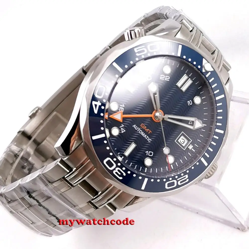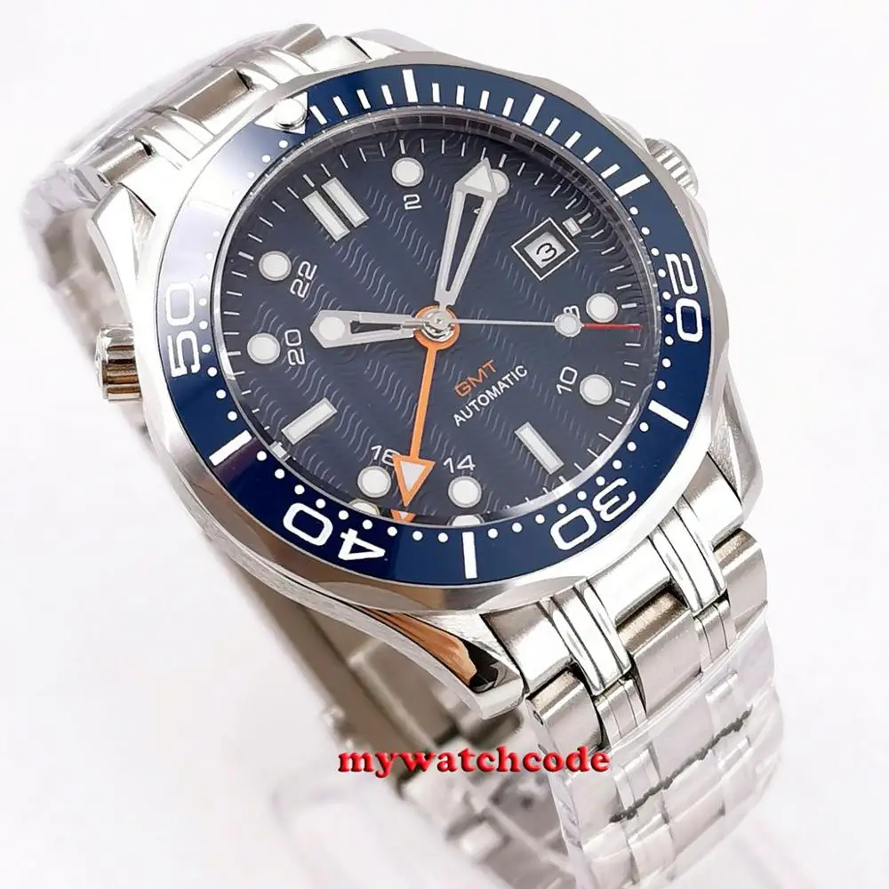 | 41mm bliger blue sterile dial GMT Sapphire glass Ceramic bezel stainless steel automatic mens watch B296 |