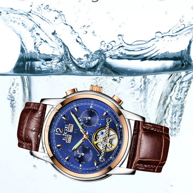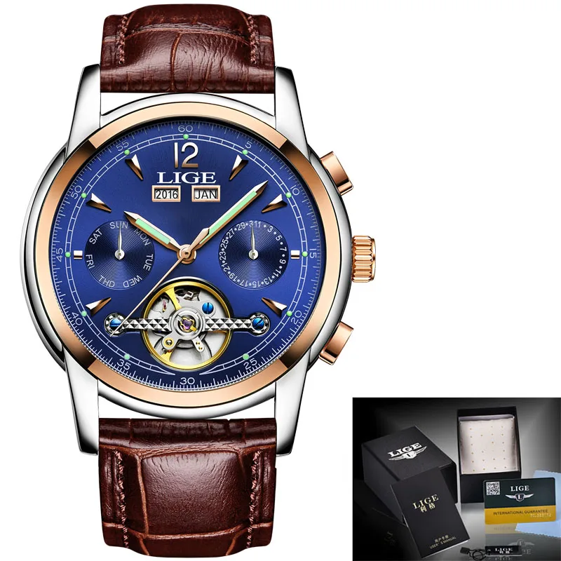 Reloj LIGE Men Watch Mechanical Tourbillon Luxury Fashion Brand Leather Man Sport Watches Mens Automatic Watch Relogio Masculino