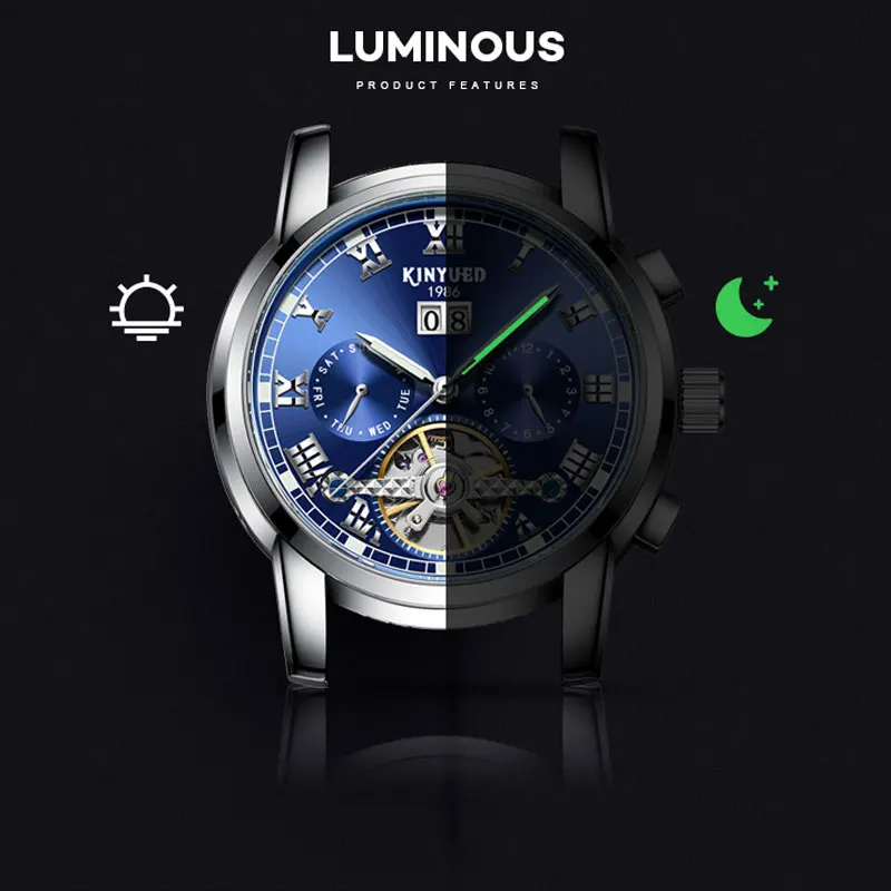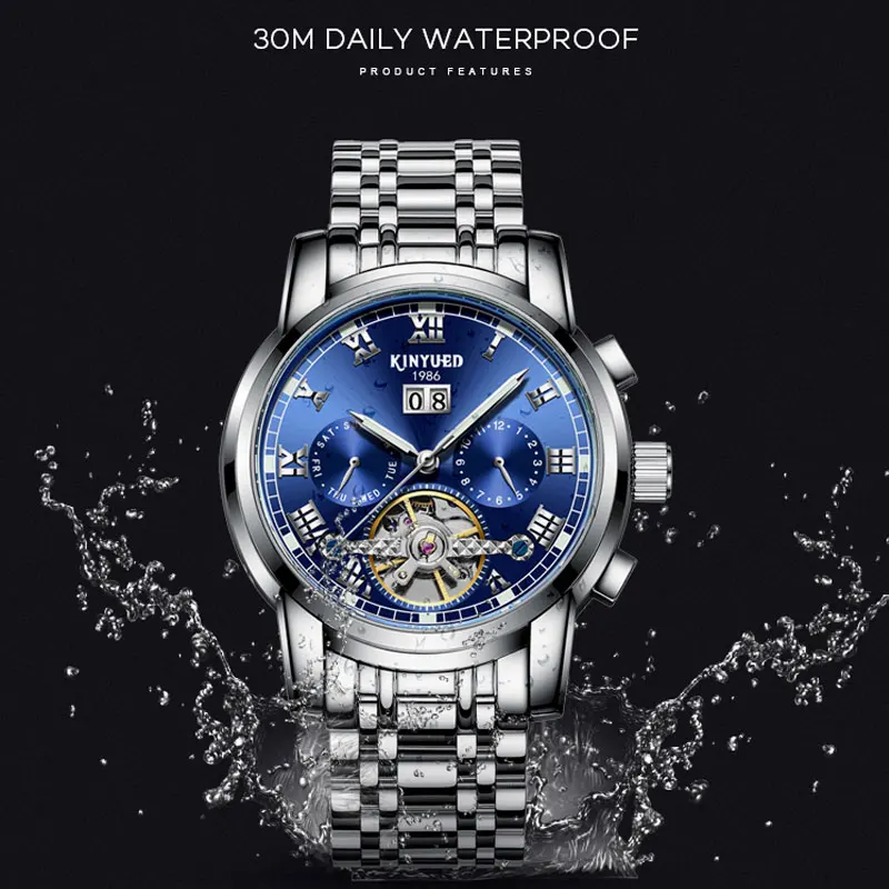 The best product you are looking for is "KINYUED Blue tourbillon steel watch male automatic mechanical watch multi-function calendar watches men waterproof clock Hollow". This product is available and ready to be purchased. Get attractive discounts every time you shop in our store (aliexpress.com). Aliexpress also provides a coupon of $ 3 for the first buyer to shop there. don't forget to bookmark our store page so you can go shopping again anytime..