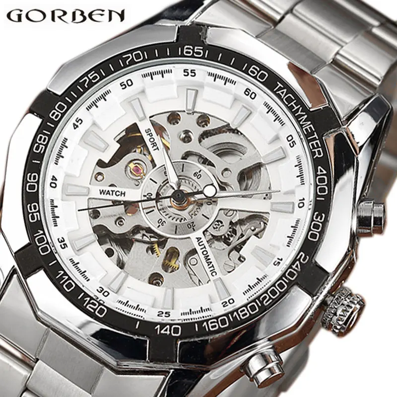 | Skeleton Automatic Mechanical Watch Winner Gold Men Watches Stainless Steel Bracelet Sports Luxury Male Clock Chinese Wristwatch |