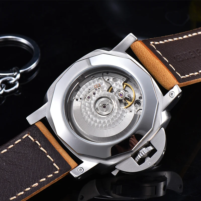 Watch Men Automatic Mechanical Stainless Steel 47mm Rose gold Case Leather strap Waterproof date Luminous Watches MenBuy Now On Aliexpress