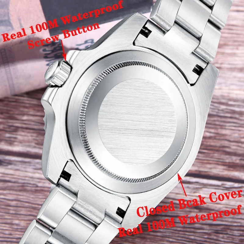 Movement: Janpan Movement (MIYOTA 8215)Mirror: SapphireBezel: Can RotateWaterproof: 100MButton: Screw Waterproof ButtonBand:316L Stainless Steel(Extended folding buckle)