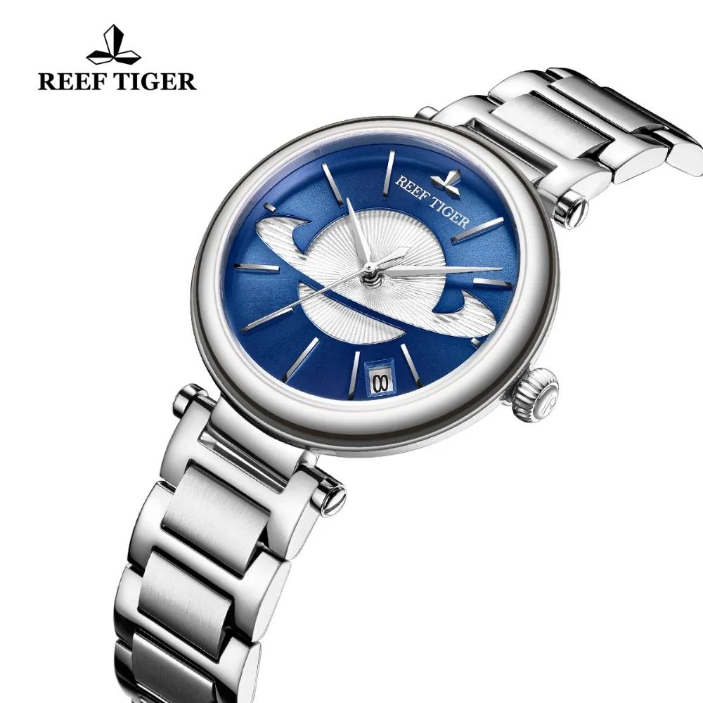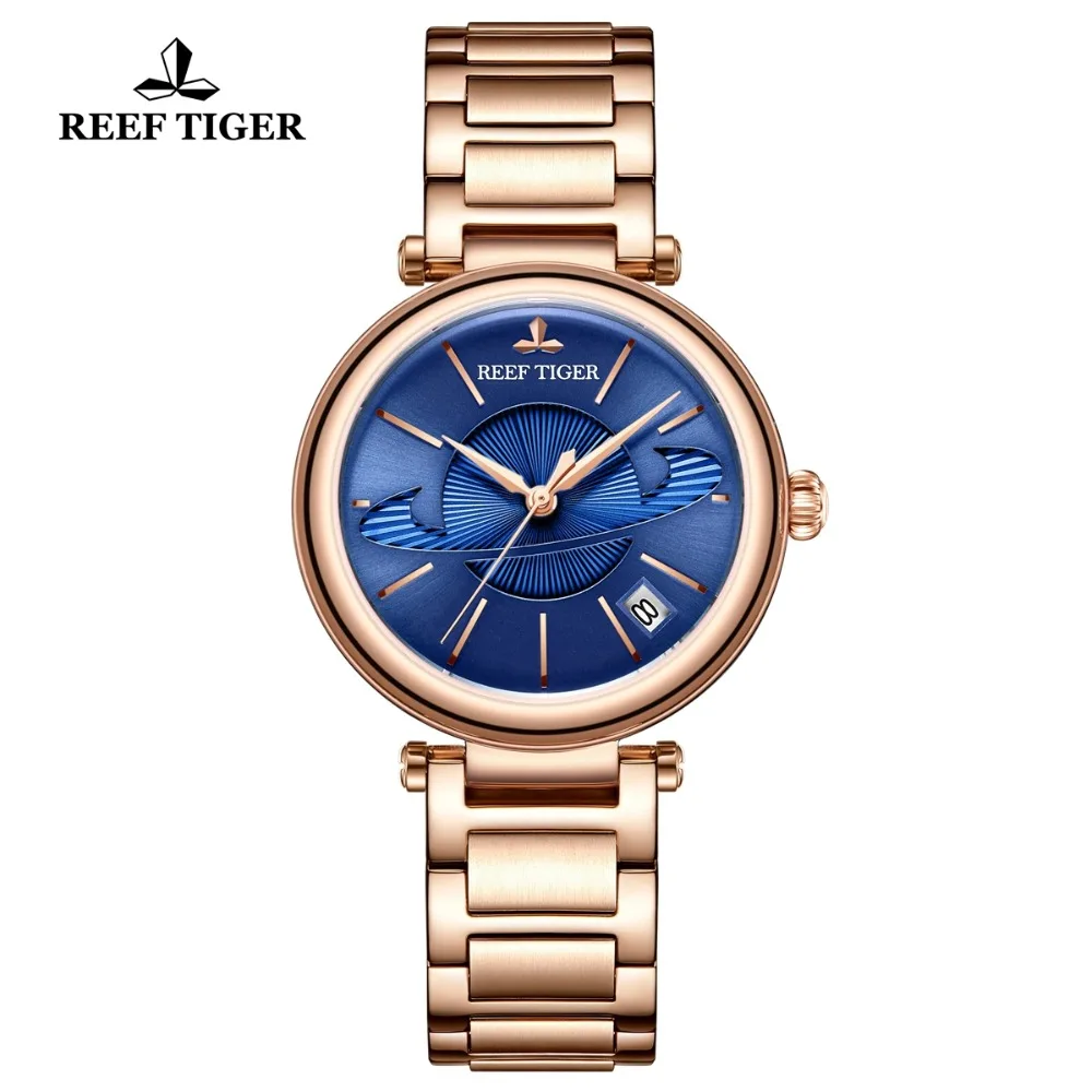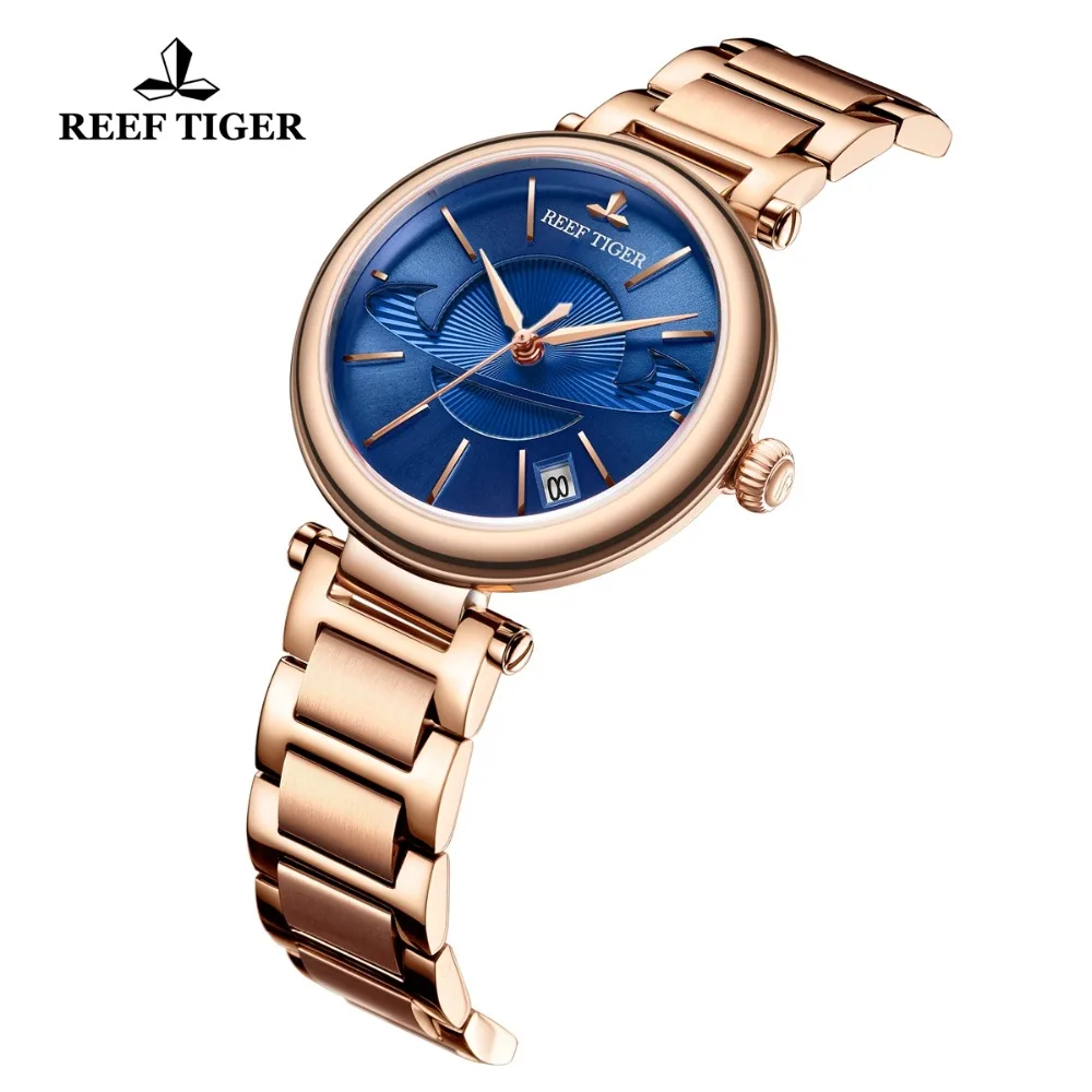 | Reef Tiger/RT Fashion Blue Watch Women Luxury Steel Exquisite Watch Brand Luxury Automatic Watches reloj mujer 2019 RGA1591 |
