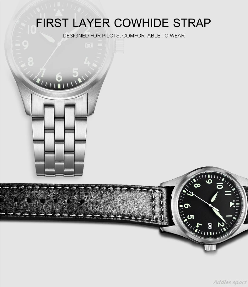 San Martin Watch Pilot Vintage Leather Strap Waterproof Luminous Machine / Quartz Men's Watch