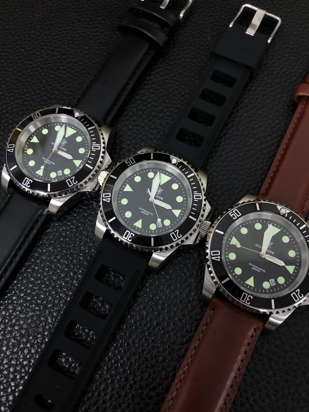 Movement type: automatic mechanical movementMovement model: Japan 8215Movement characteristics: 3-pin / calendar, frequency 21,600 times per hour(3Hz), stop-second device, one-way automatic winding, 21 stones, 40 hours energy storage.Case material: 316L stainless steelCase Craft: Brushed + PolishedBottom cover material: 316L stainless steelBottom cover type: Screw-in bottom coverCase diameter: 41mm (excluding bar)Case length: 48mm (total length above and below)Case thickness: 13.5mm (including mirror and bottom cover)Case ear position: 20mm (where the case and strap are linked)Head weight: 76g (without strap)Whole table weight: 91g (including leather strap)Watch length: 250mm (total watch length / perimeter)Strap material: leather / silicone / stainless steelTable mirror material: mineral strengthened crystal glassTable type: flatMirror coating: gold-plated steel filmMirror size: 30.5 * 2.5mm (diameter * thickness)Head type: screw-in lockHead size: 7mm (diameter)Bezel Material: AluminumBezel features: 120 toothed one-way rotationBezel luminous: 240,000 / KG Swiss C3 super luminous powder with green lightBezel size: 38.0 * 30.6 * 1.6mm (outer diameter * inner diameter * thickness)Surface color: matte black printed super luminousSurface luminous: 240,000 / KG Swiss C3 super luminous powder, green lightSurface size: 31.25 * 29.5 * 27.5 * 0.4mm (silk hole * face diameter * open face * thickness)Pointer craft: batch flower super luminousPointer luminous: 240,000 / KG Swiss C3 super luminous powder with green lightPointer size: 8 * 12 * 12mm (hour hand * minute hand * second hand length)Waterproof level: 200 meters waterproof / diving [can wash hands, swim, dive, meet all daily waterproof use]Exhaust valve: NoneWarranty period: three years free warrantyPackaging standard: professional waterproof plastic box packaging