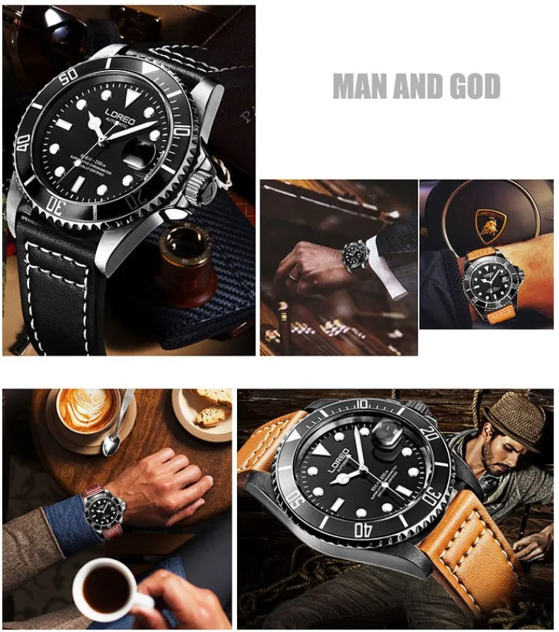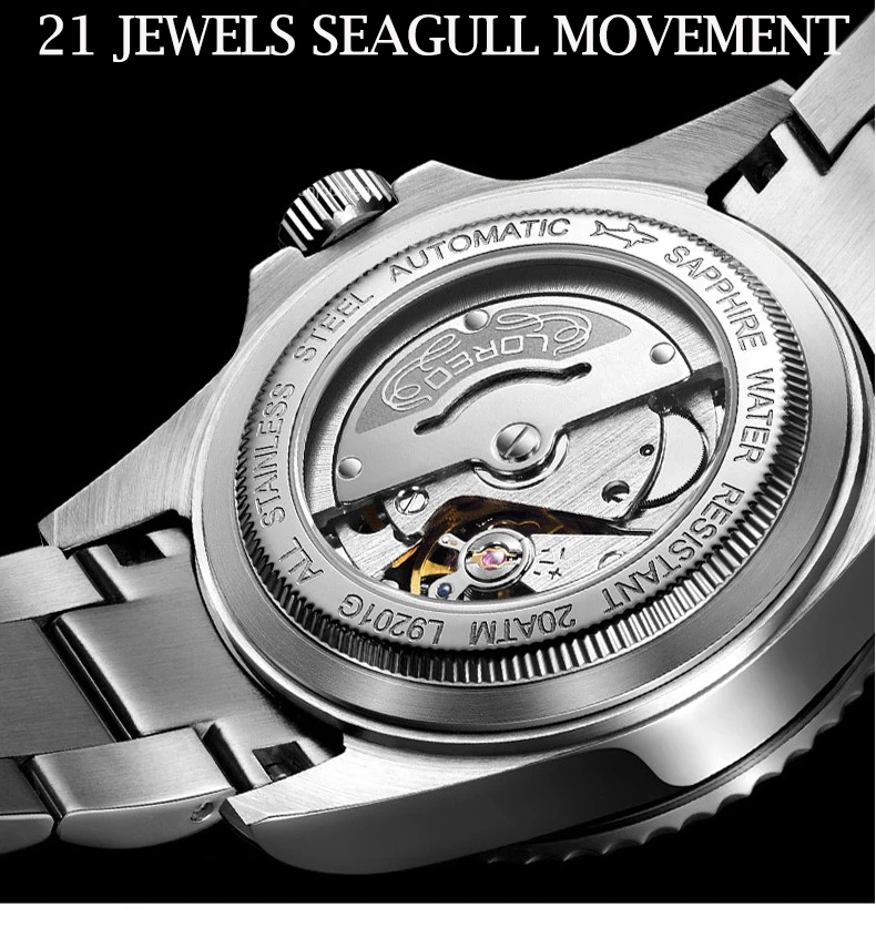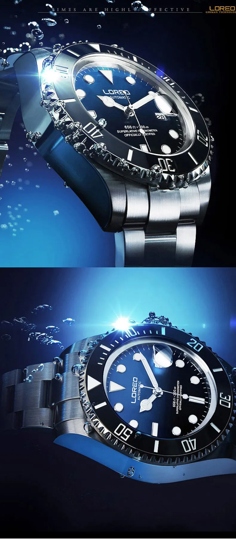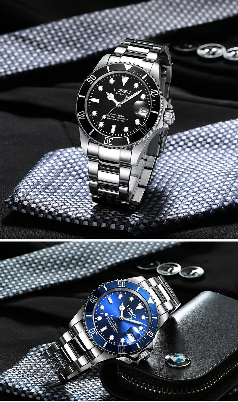 LOREO Men Watches Auto Date Sapphire Watch Sports Stainless Steel Strongest Luminous Waterproof 200m Diver Mechanical WristwatchBuy Now On Aliexpress