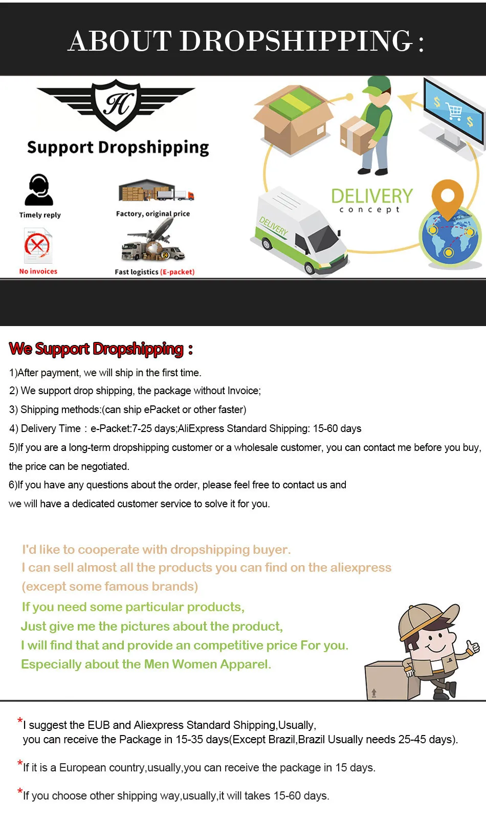 2. We support dropshipping and have worked with many dropshipping. We know how to operate.