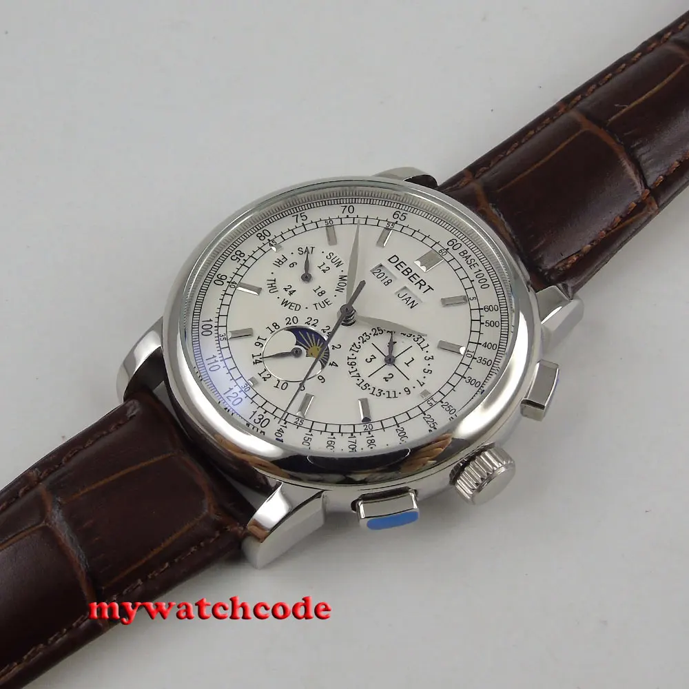 Top Brand 42mm Debert mechanical wristwatches moon Phase White Dial Silver Year Day Month Week 316L SS Case Automatic watch men