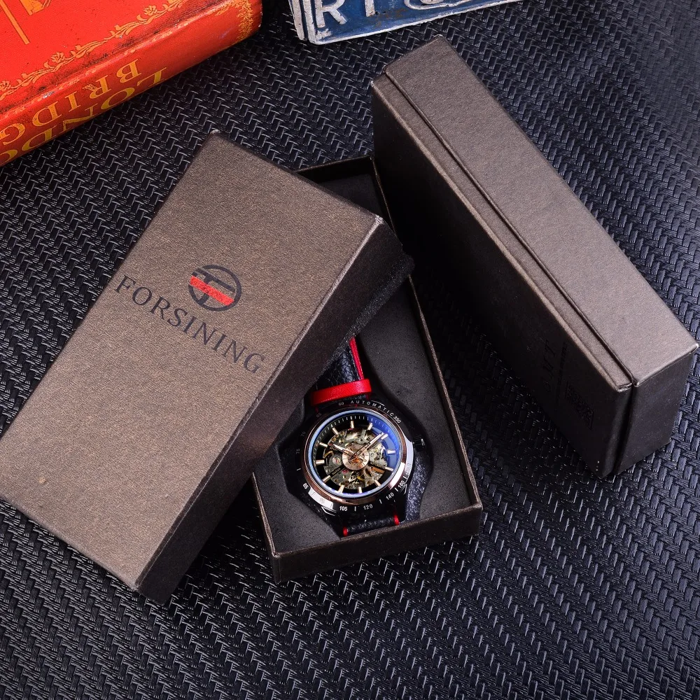 | Forsining Motorcycle Design Genuine Black Belt Waterproof Skeleton Men Automatic Watches Top Brand Luxury Mechanical Male Clock |