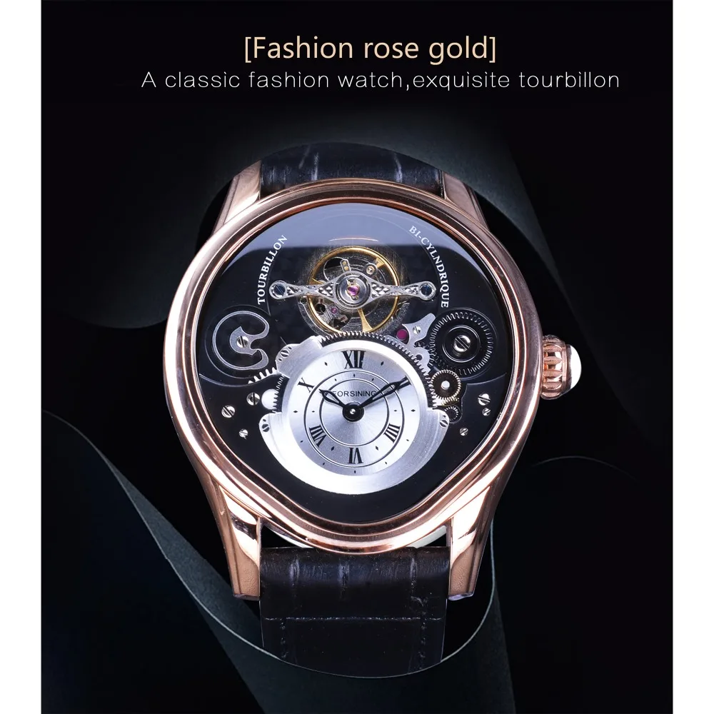 | Forsining Rose Gold Tourbillion Design 316 Full Stainless Steel Case Genuine Leather Belt Men Automatic Watches Top Brand Luxury |