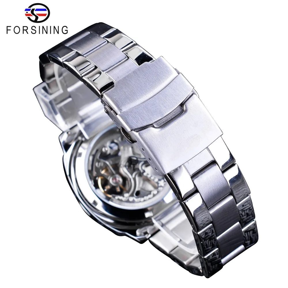 | Forsining Watch + Band Set Combination Mechanical Wrist Fashion Silver Men Automatic Watches Luminous Hand Waterproof Male Clock |