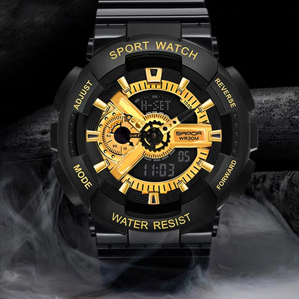 SANDA New Mens Sports Watches Luxury Brand Thermometer Military Quartz Digital Watch Men S Shock Dual Display Watches Relogio