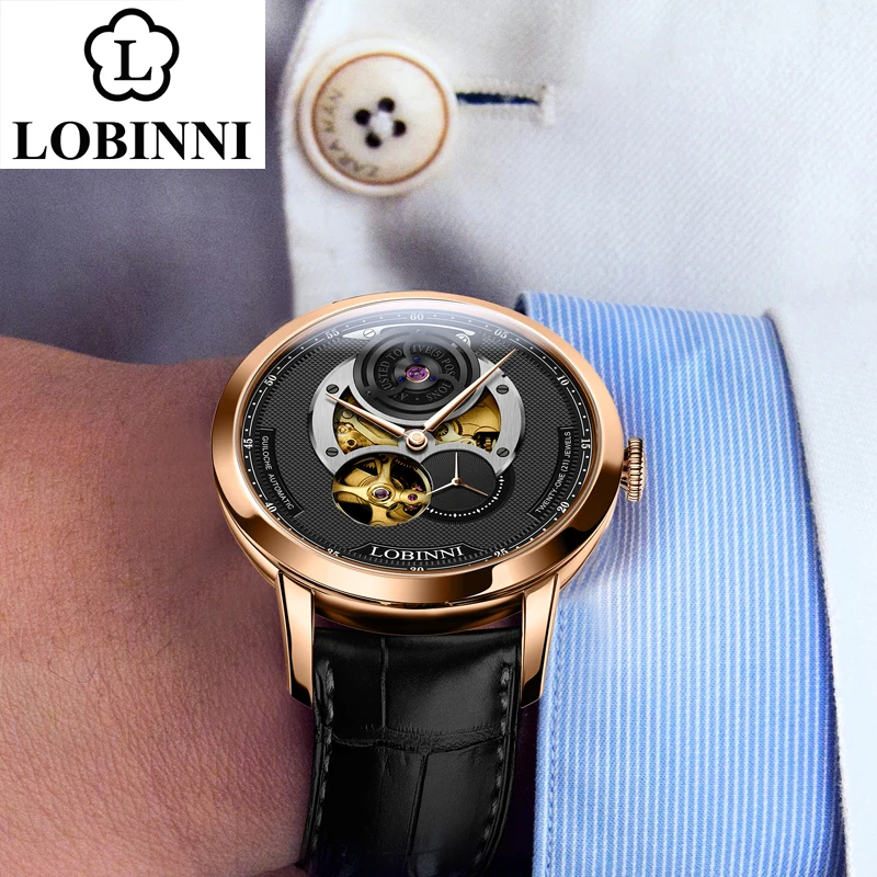 LOBINNI Switzerland Brand Tourbillon Mechanical Men Wristwatches Leather Strap Skeleton Male Watch Waterproof 50M Male clockBuy Now On Aliexpress