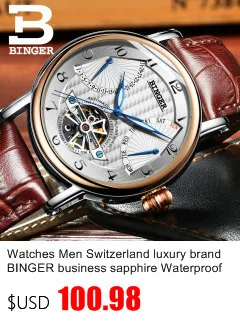 Switzerland BINGER Men's Watches Luxury Brand Quartz Leather Strap Ultrathin Complete Calendar Wristwatches Waterproof B3053MBuy Now On Aliexpress