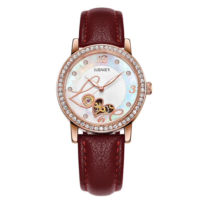 | OUBAOER Original Brand Women Mechanical Automatic watch Self-Winding watches Genuine Leather Diamond Luxury Design Women Watches |