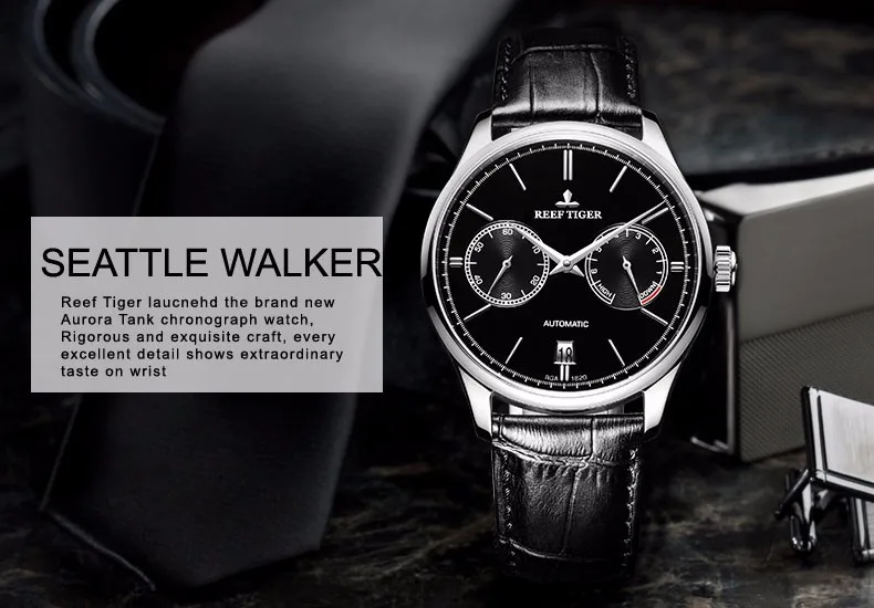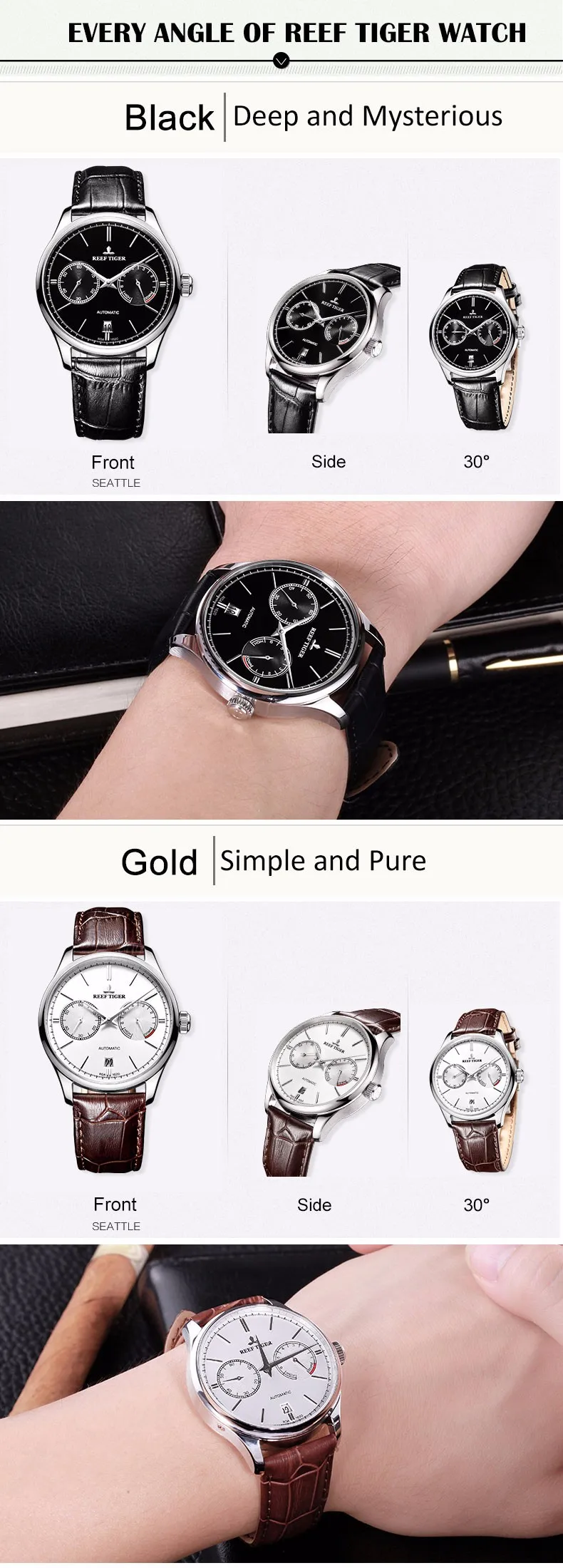 Reef Tiger Settle Serier RGA1620 Men Business Fashion Dual Windows Watches Automatic Mechanical Wrist Watch with Power ReserveBuy Now On Aliexpress
