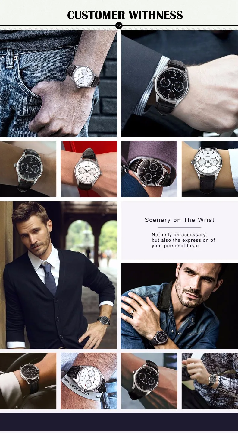 Switzerland BINGER Brand Men watch leather strap automatic mechanical watch male Luxury self-wind simple cruve surface handwatch
