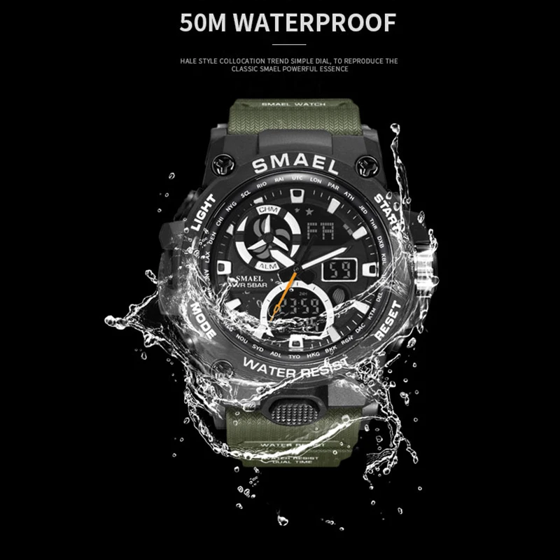 men sport watches SMAEL brand dual display watch men LED digital analog electronic quartz watches 30M waterproof male clock