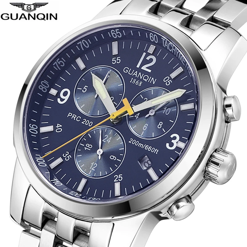 GUANQIN Mechanical Automatic Wristwatches date watch 200m swimming waterproof Sport Full Steel guanqin Relogio Masculino