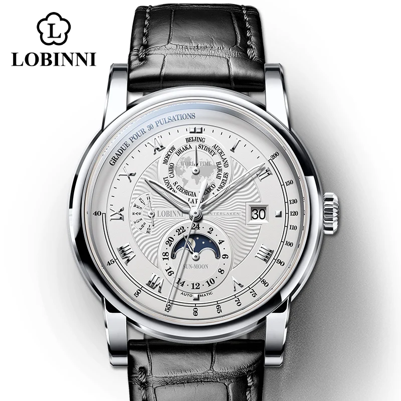 Switzerland LOBINNI Men Watch Luxury Brand Moon Phase Automatic Mechanical Men's Wirstwatches Sapphire Leather Seagull MovementBuy Now On Aliexpress
