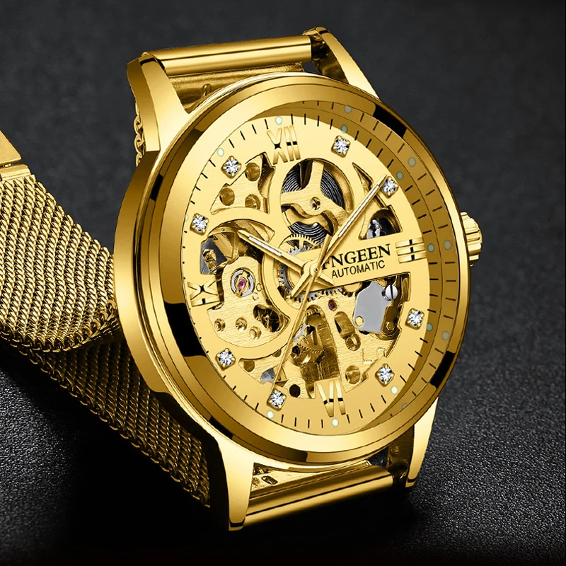 | 2020 Brand FNGEEN Mechanical Watches Men Skeleton Mesh Clock Automatic Watch Men Relogio Masculino Gold Wrist watch for Men Male |