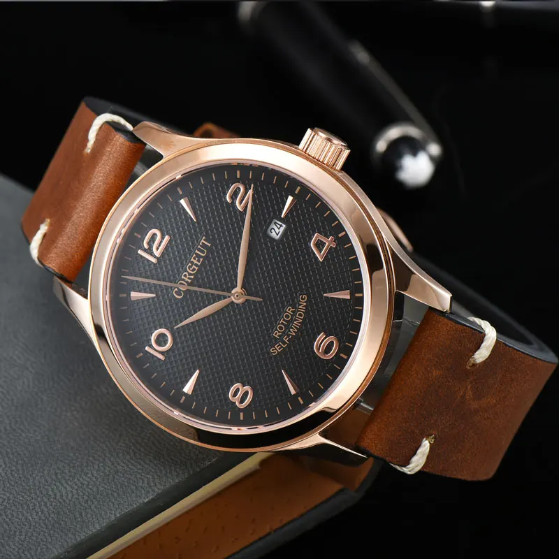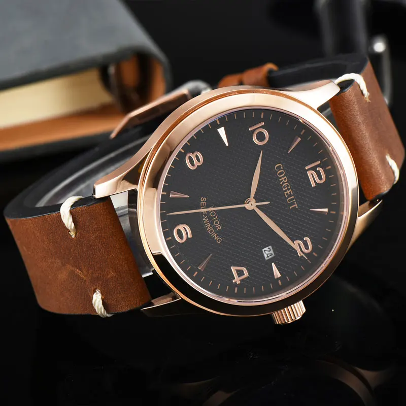 Corgeut 42mm Automatic Mechanical Watch Men Fashtion Seagull Power Reserve Date Business Waterproof Leather Strap Wristwatch MenBuy Now On Aliexpress