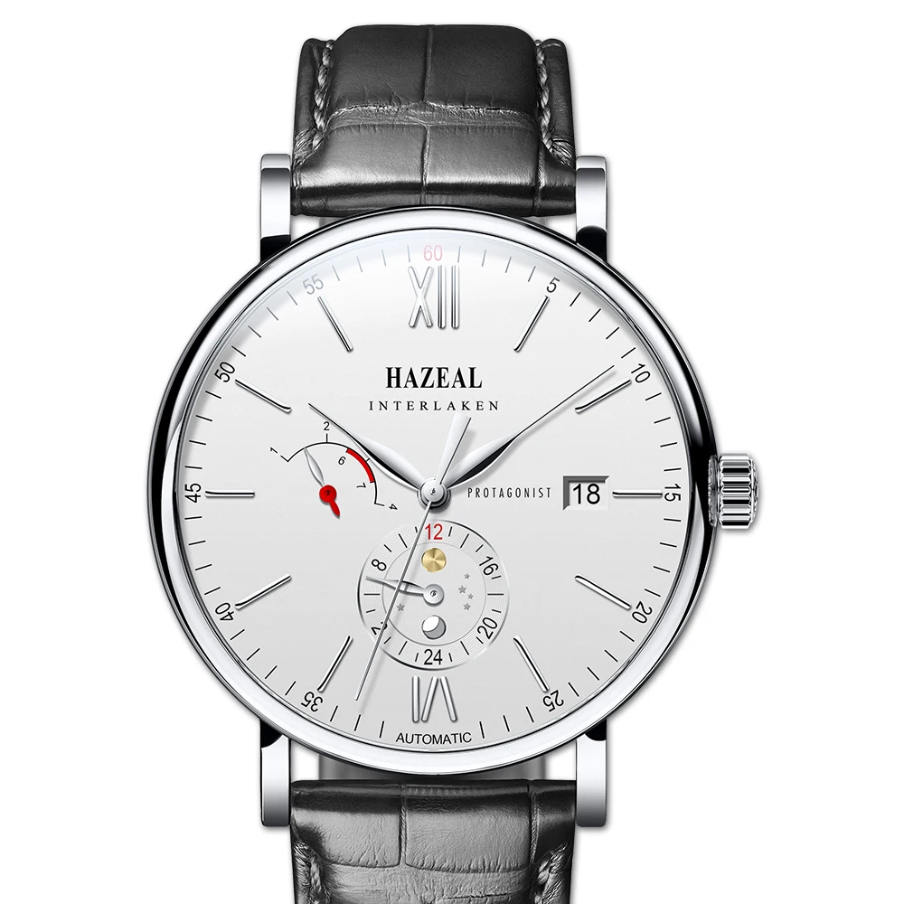 dress mens watches,moon phase wrist watch men HAZEAL man luxury wristwatch waterproof reloj hombre business montre leather strapBuy Now On Aliexpress