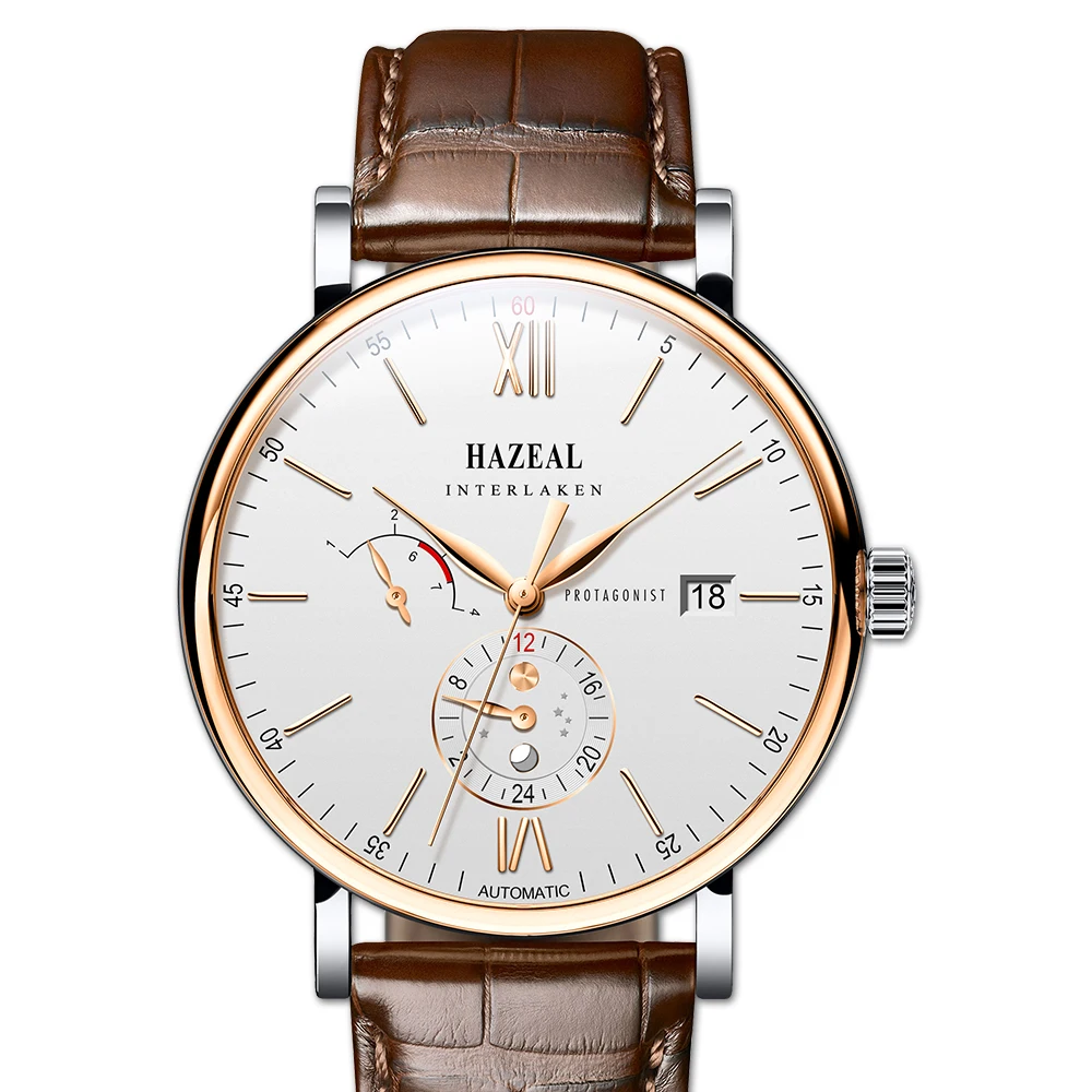 | mens automatic watches,wrist watch men HAZEAL man luxury wristwatch waterproof mechanical reloj hombre leather strap business |