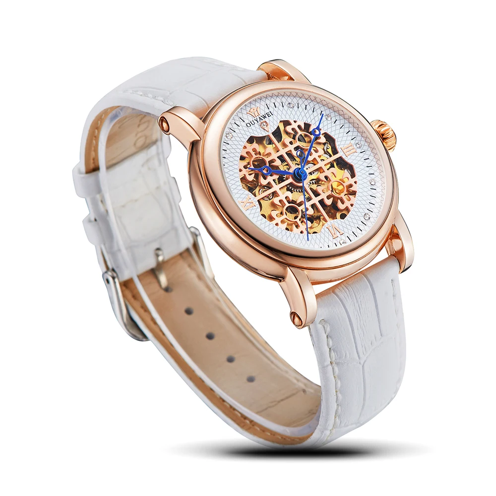| OUYAWEI Classic Large Dial Woman Mechanical Watches Ladies Luxury Leisure automatic Watch Fashion White Leather relogio feminino |